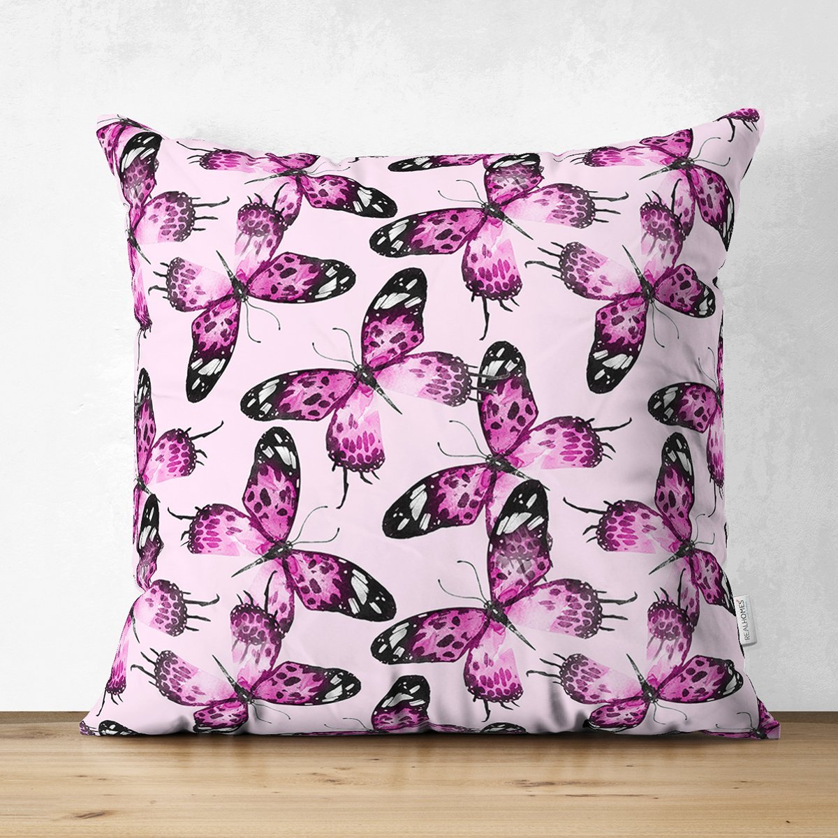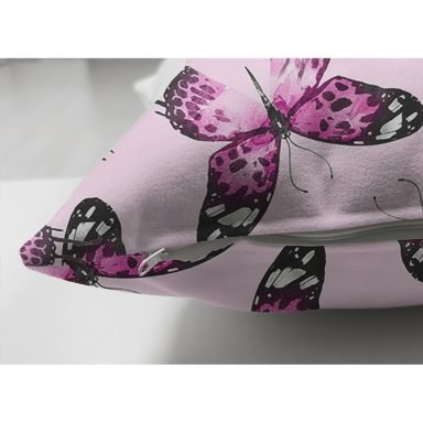 Mor Kelebek Motifli Dijital Baskılı Modern Süet Yastık Kırlent Kılıfı