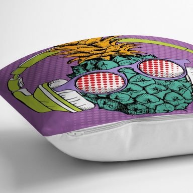 Mor Zeminde Tropikal Ananas Desenli Dijital Baskılı Kırlent Kılıfı