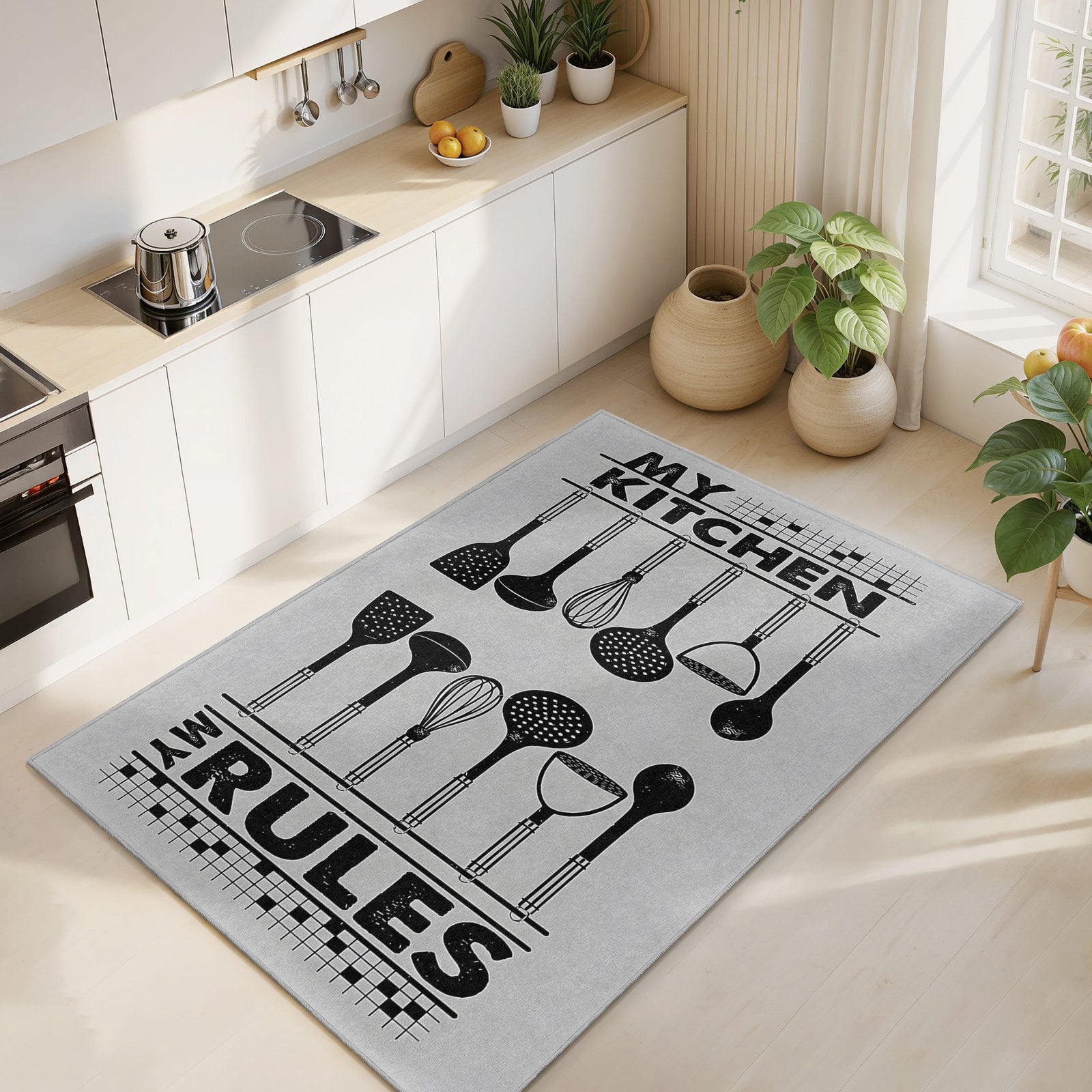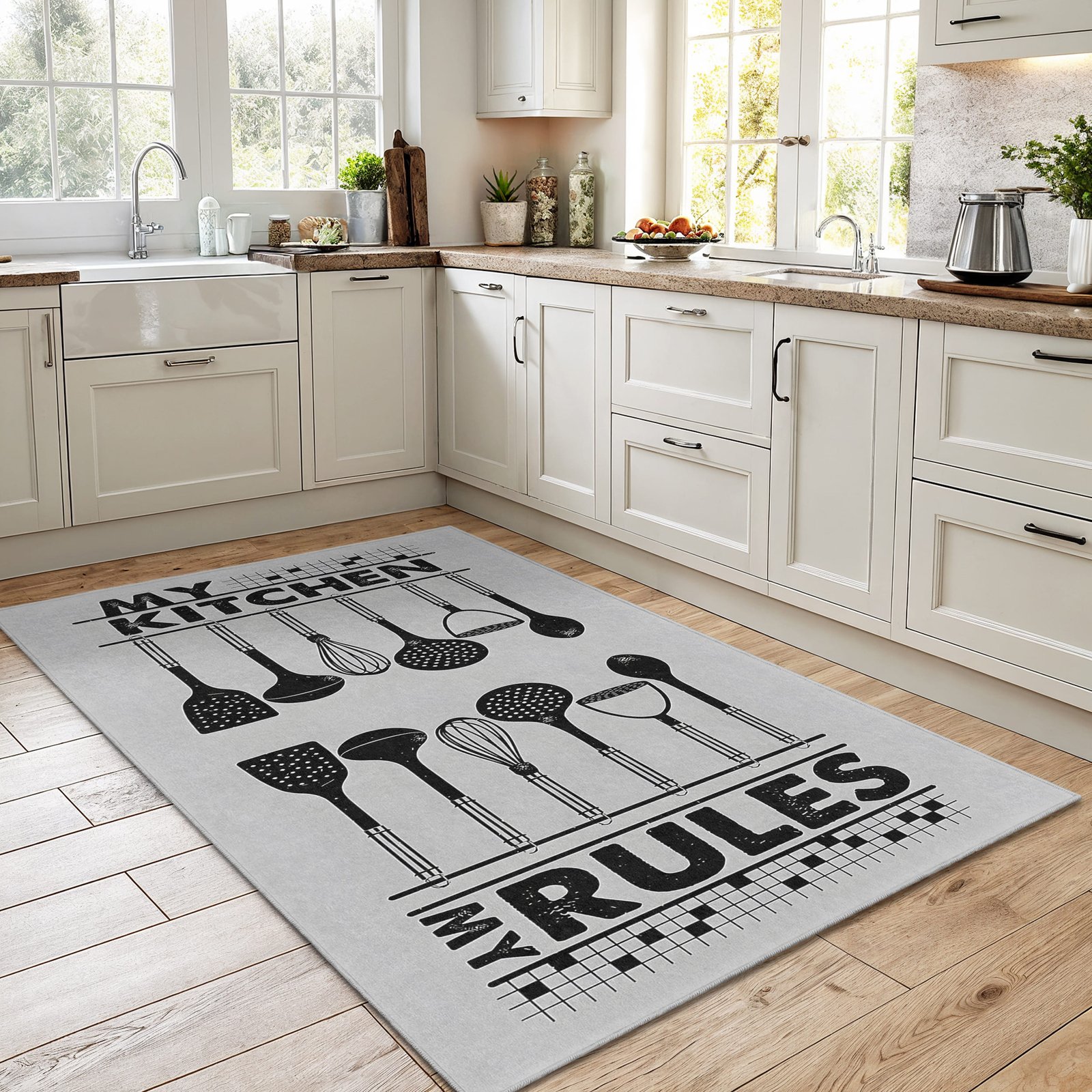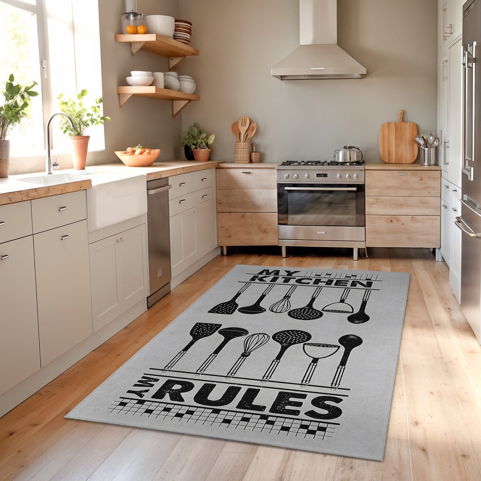 Mutfak Kurallarını Belirten Eşsiz Tasarımlı Yıkanabilir Kaymaz Taban Halı