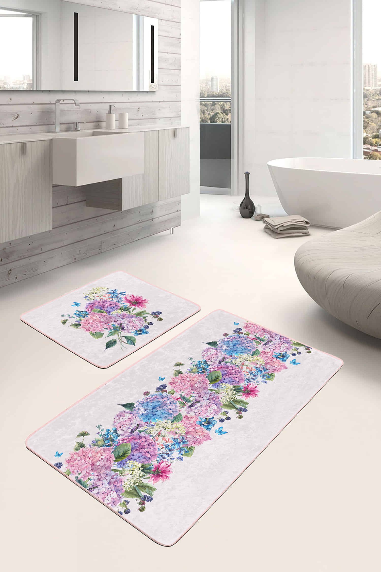 Ortanca Çiçekleri 2’li Kaymaz Tabanlı Banyo Paspas Takımı