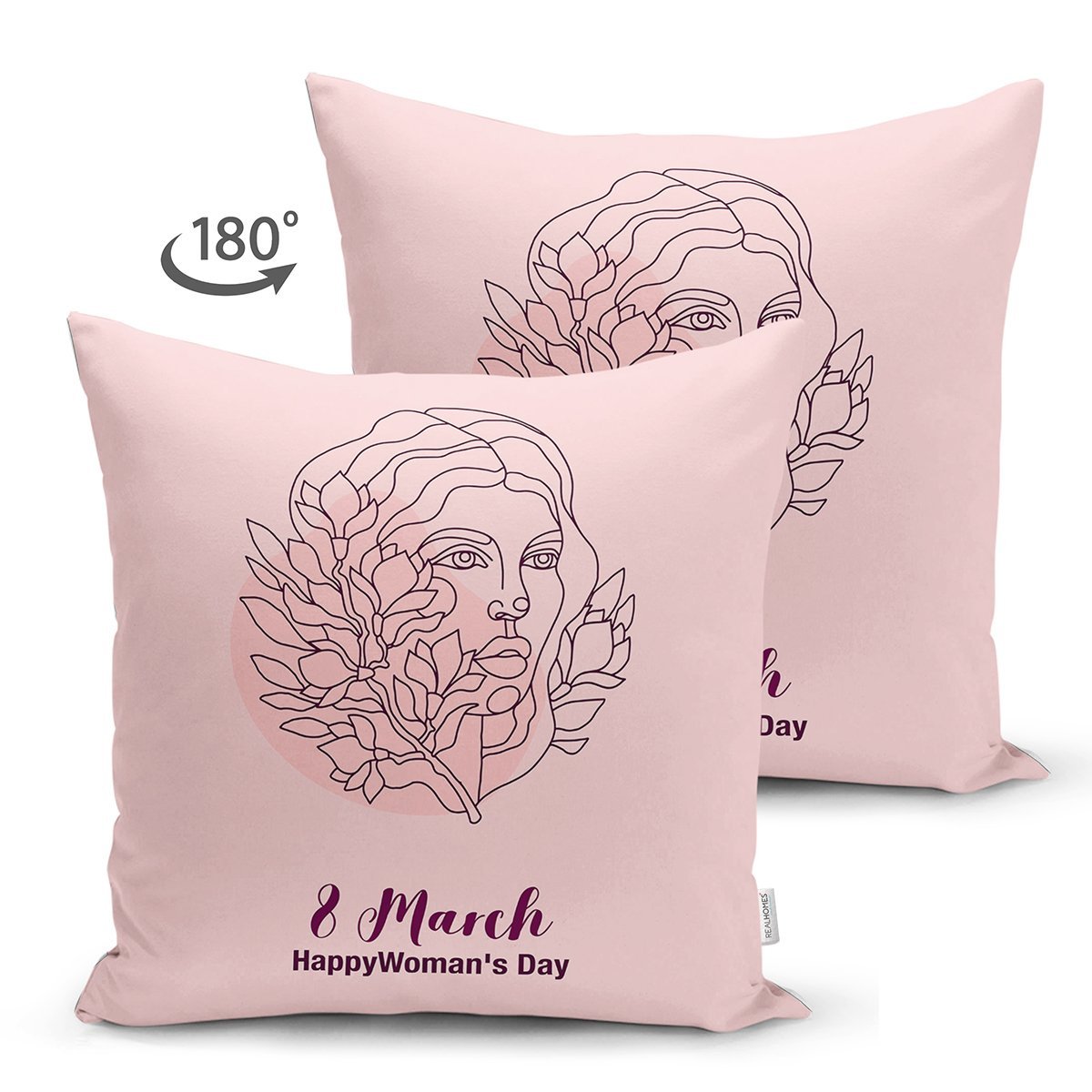 Özel Tasarım 8 March Kadın Silüetli Dijital Baskılı Modern Süet Yastık Kırlent Kılıfı