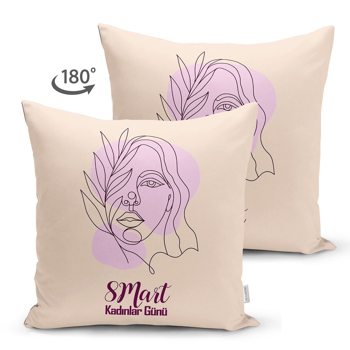 Özel Tasarım 8 Mart Kadın Silüetli Dijital Baskılı Modern Süet Yastık Kırlent Kılıfı