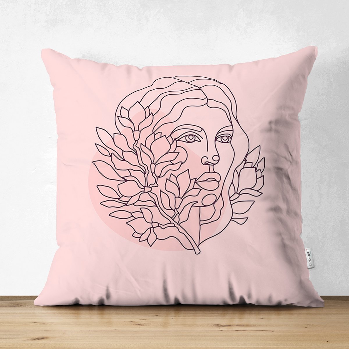 Özel Tasarım Kadın Silüetli Dijital Baskılı Modern Süet Yastık Kırlent Kılıfı