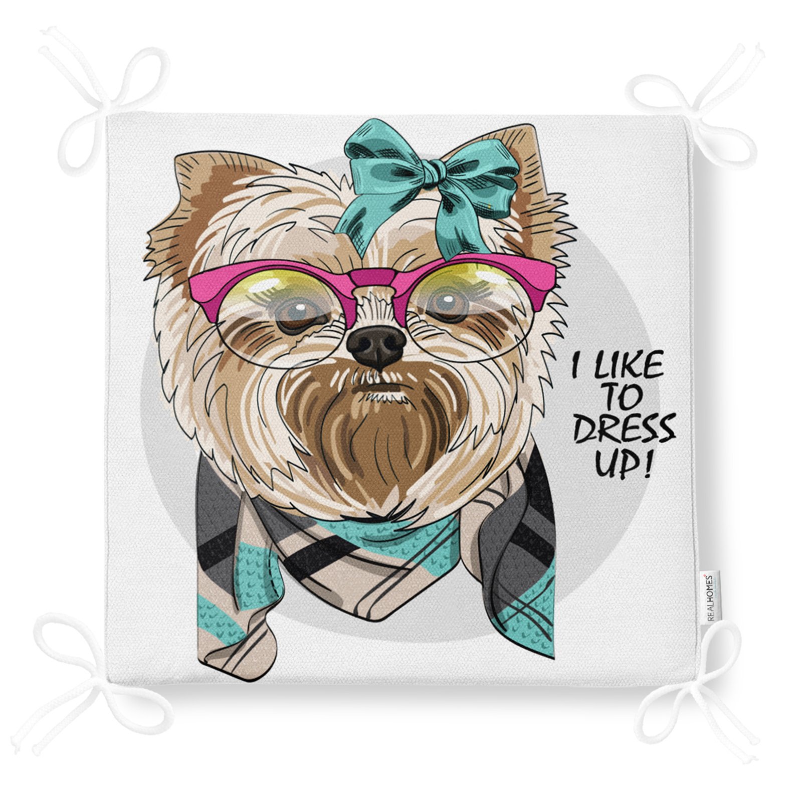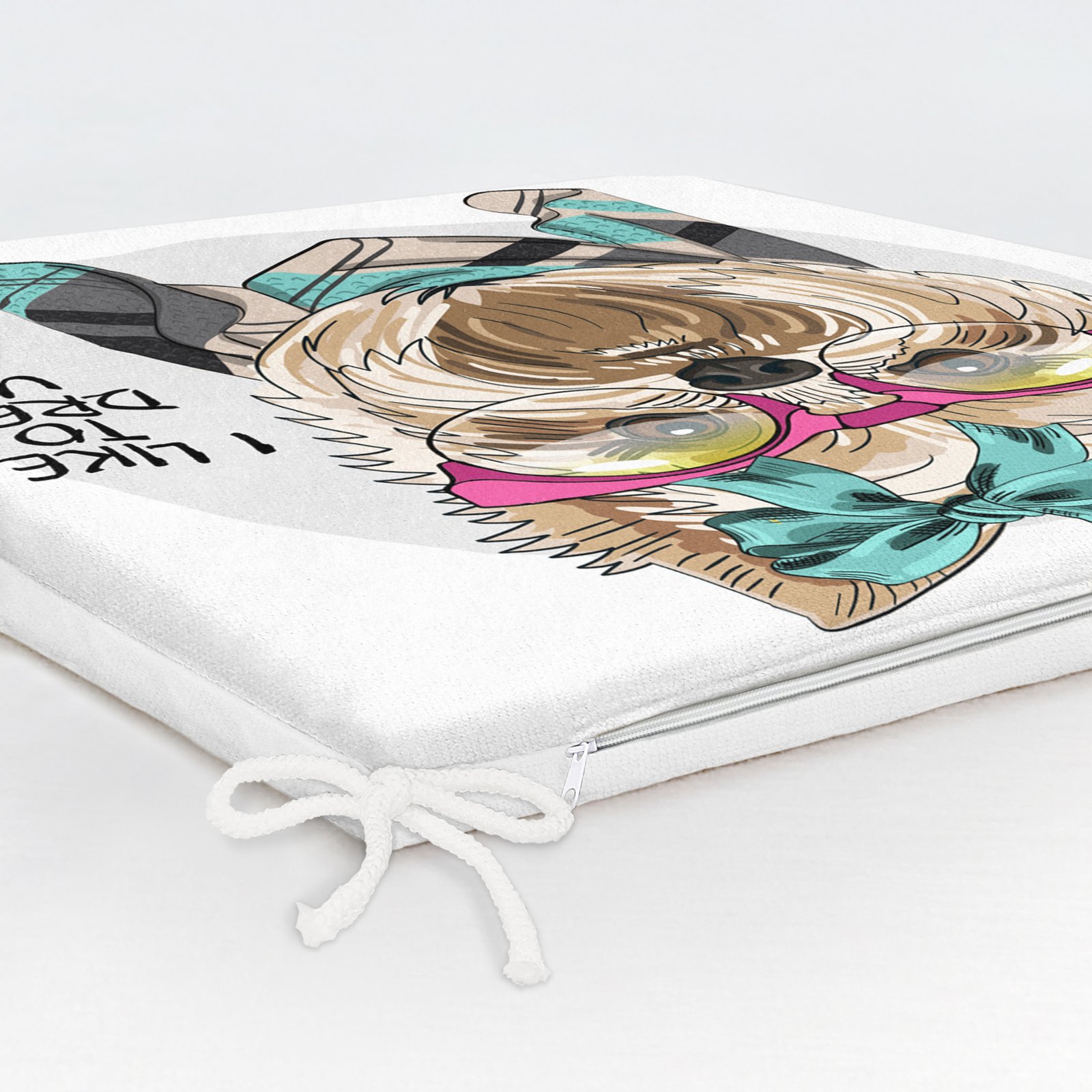 Özel Tasarım Köpekçik Tasarımlı Dijital Baskılı Modern Fermuarlı Sandalye Minderi