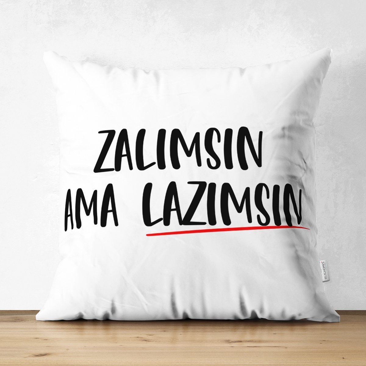Özel Tasarım Zalımsın Ama Lazımsın Dijital Baskılı Dekoratif Süet Yastık Kırlent Kılıfı