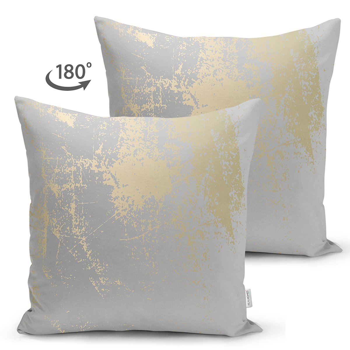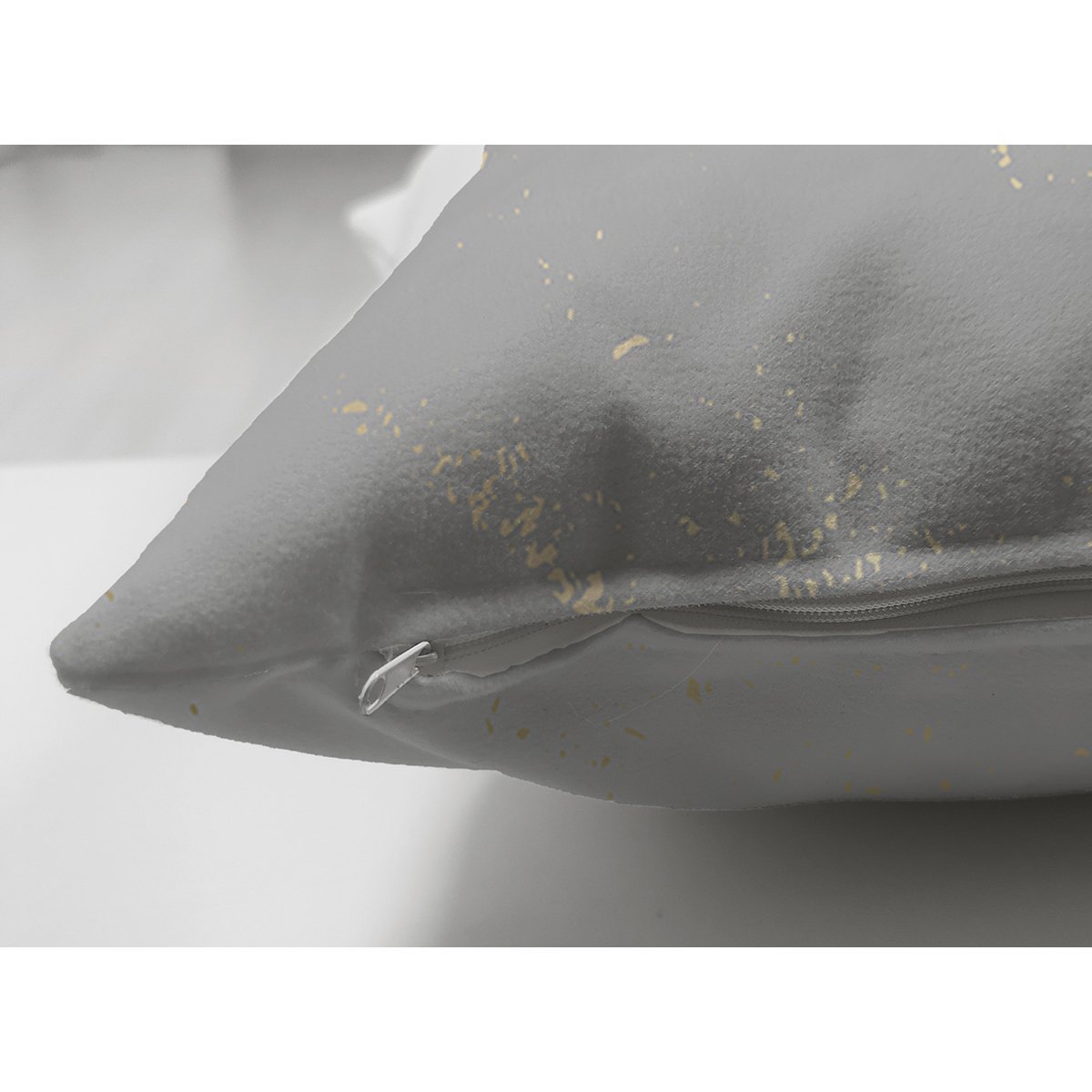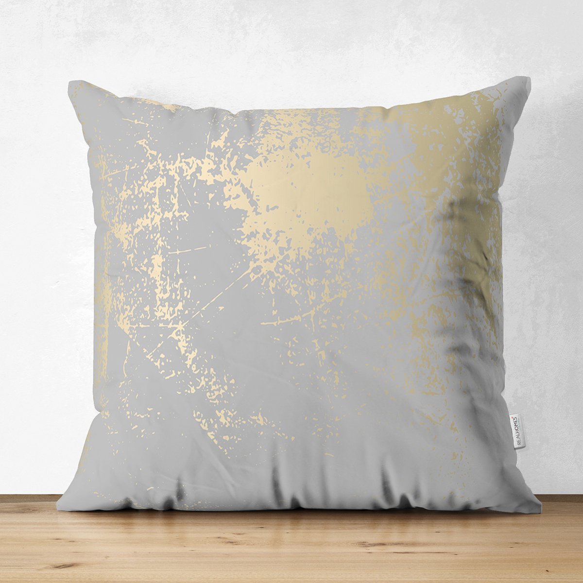 Pastel Zemin Geometrik Desenli Gold Detaylı Dijital Baskılı Modern Süet Yastık Kırlent Kılıfı