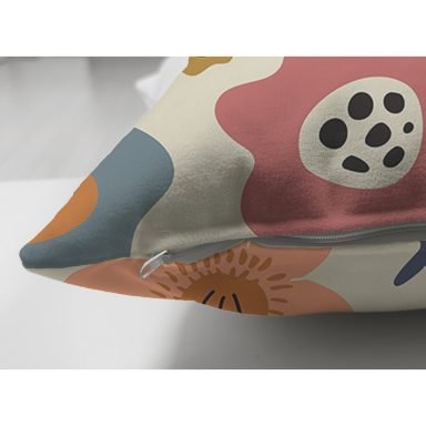 Pastel Zemin Üzerinde Çiçek Desenli Dijital Baskılı Modern Süet Yastık Kırlent Kılıfı
