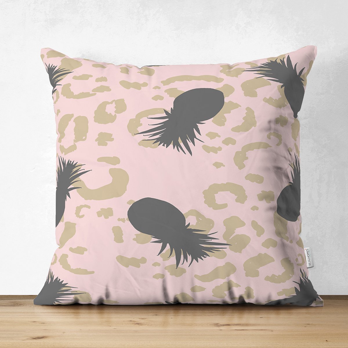 Pastel Zemin Üzerinde Gold Detaylı Ananas Desenli Dijital Baskılı Modern Süet Yastık Kırlent Kılıfı