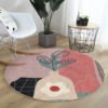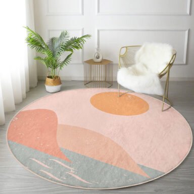 Pastel Zeminde Güneş Desenli Modern Turuncu Yatak Odası Yıkanabilir Kaymaz Tabanlı Yuvarlak Halı