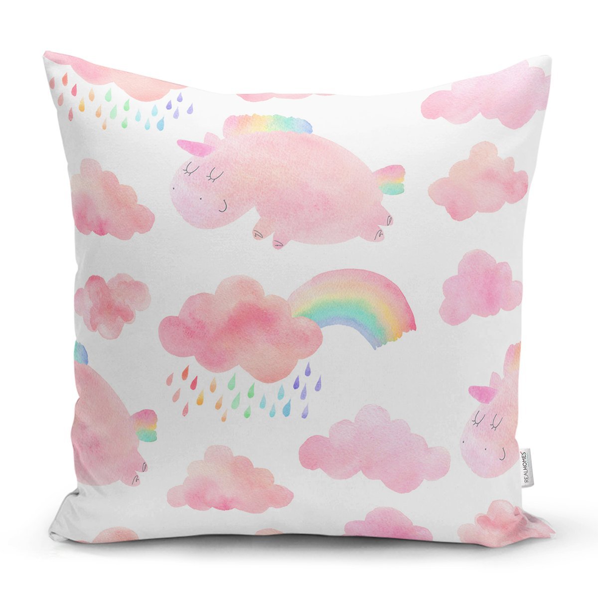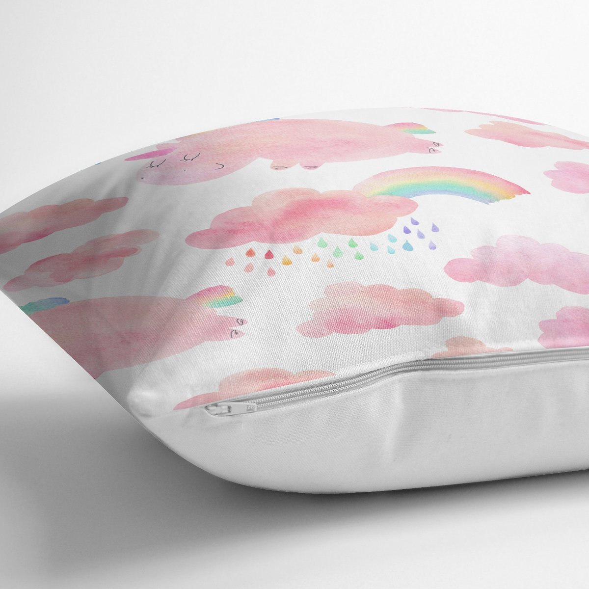Pembe Bulut Ve Unicorn Motifli Dijital Baskılı Özel Tasarım Modern Yastık Kırlent Kılıfı