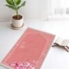 Pembe Çiçekli Kabe Motifli Dijital Baskılı Kaymaz Tabanlı Namazlık Seccade