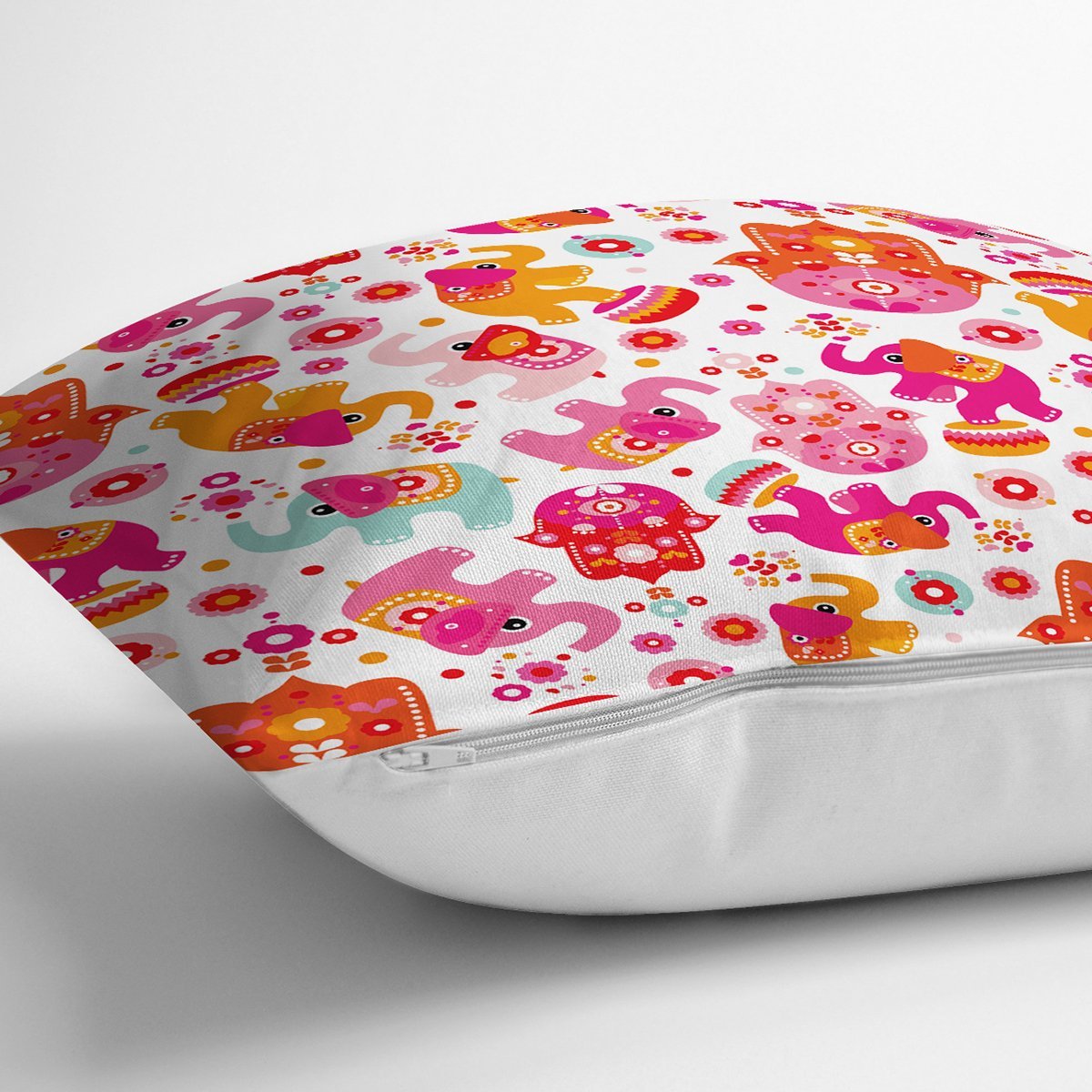 Pembe Fil Motifli Dijital Baskılı Özel Tasarım Modern Yastık Kırlent Kılıfı