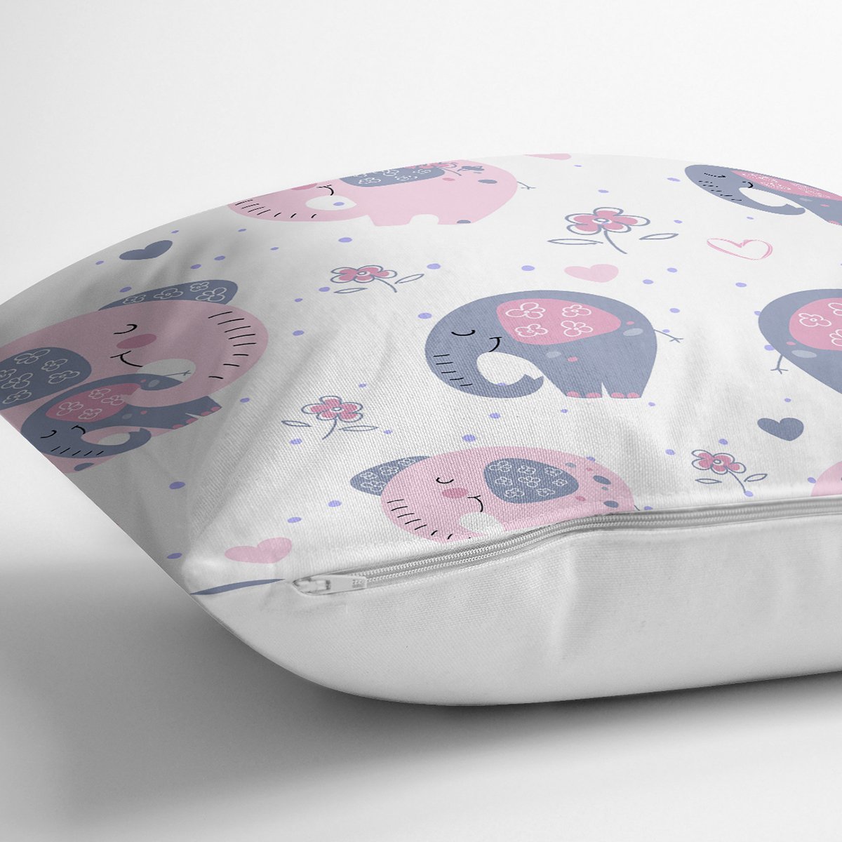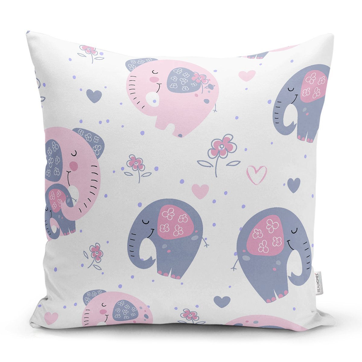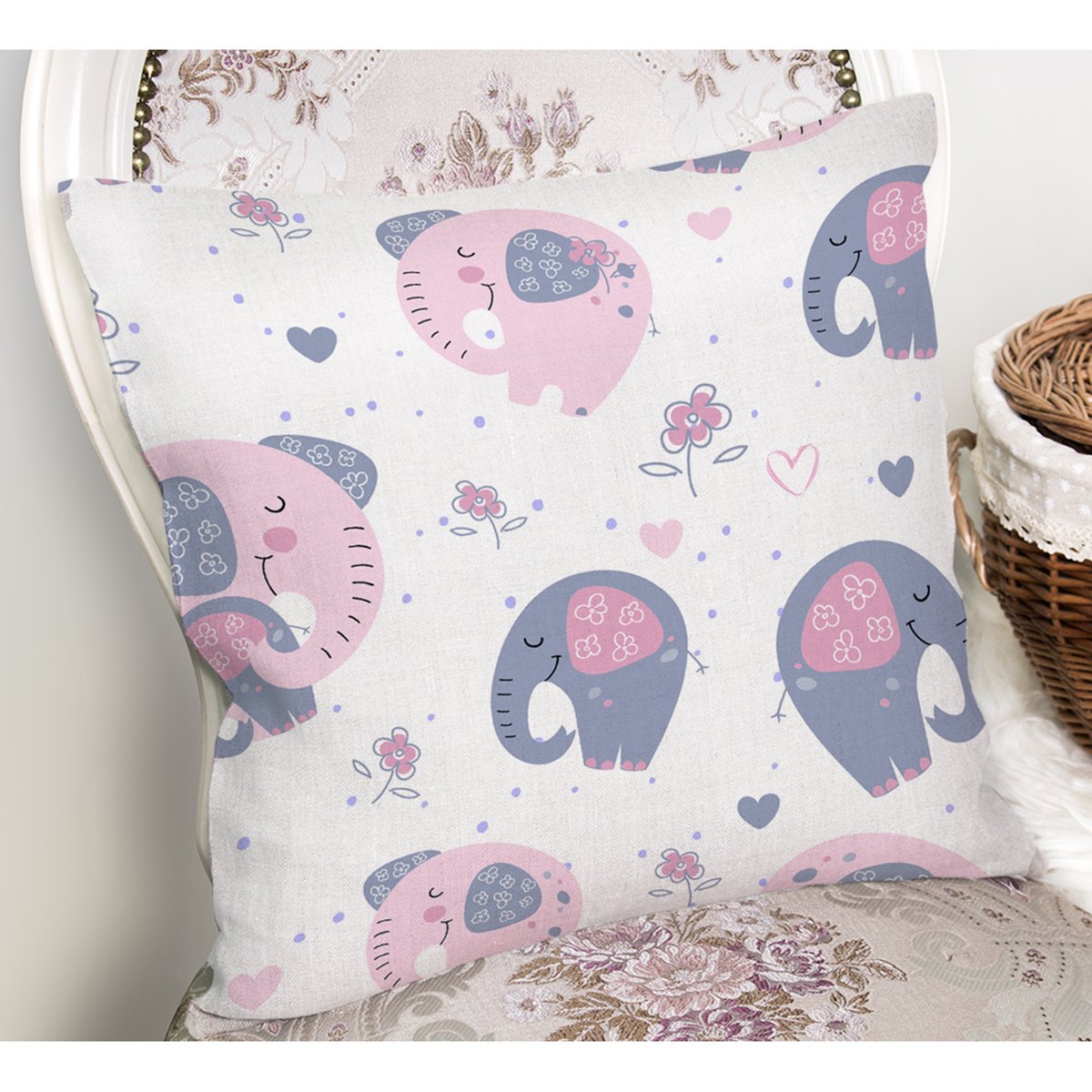 Pembe Fil Motifli Dijital Baskılı Özel Tasarım Modern Yastık Kırlent Kılıfı
