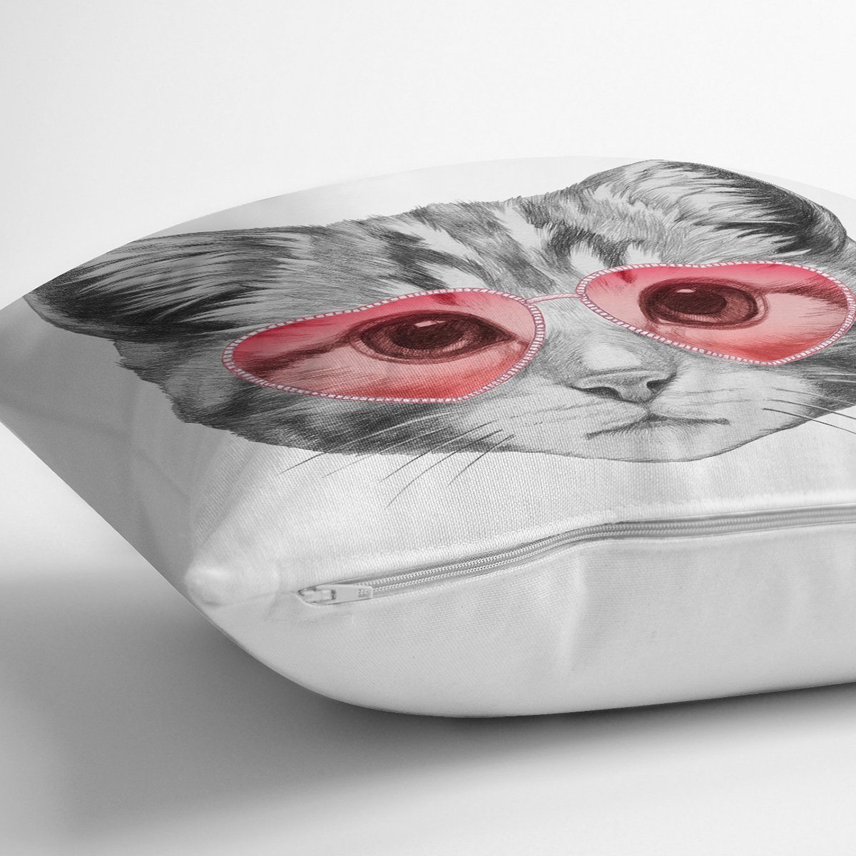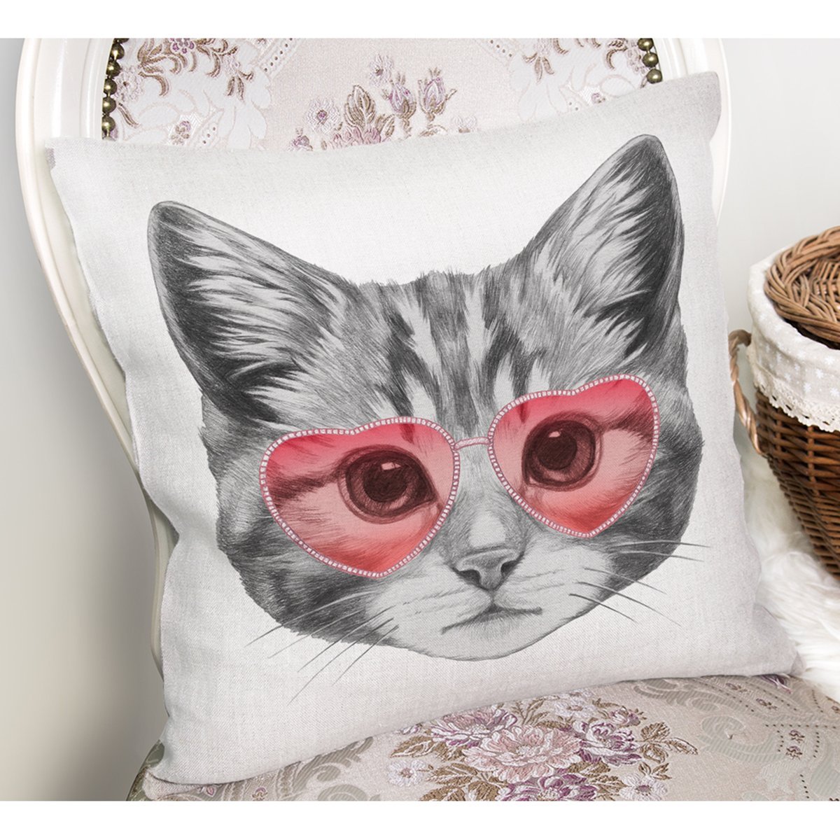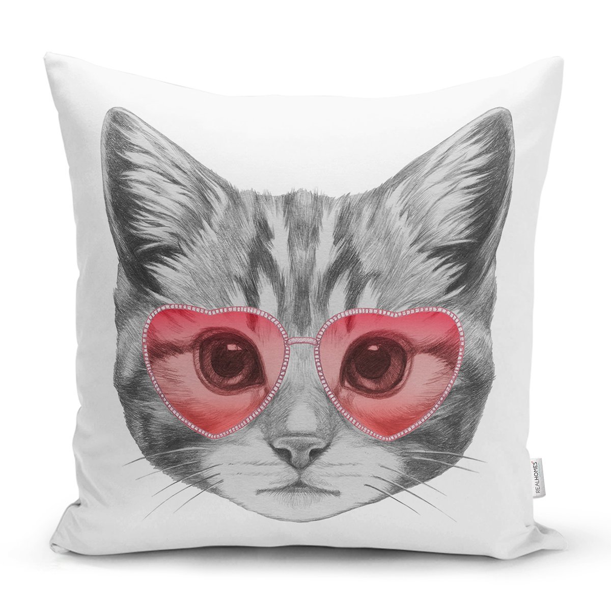 Pembe Gözlüklü Dijital Baskılı Modern Yastık Kırlent Kılıfı