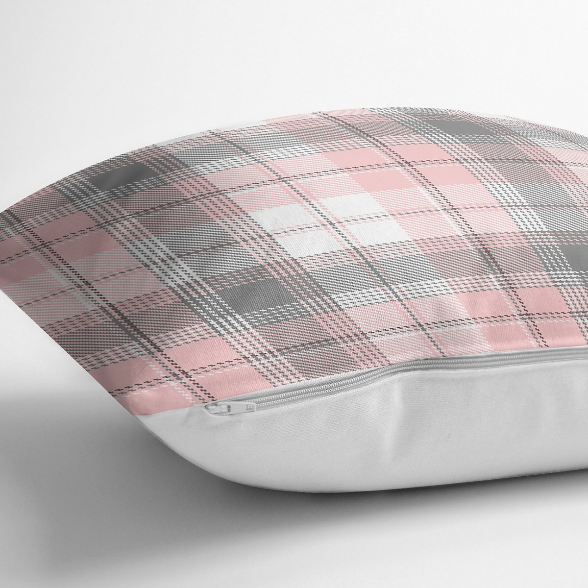 Pembe Gri Ekose Desenli Dekoratif Yastık Kırlent Kılıfı