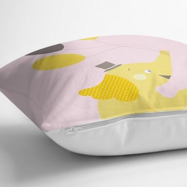 Pembe Gri Zigzag Zeminle I Love Animal Çocuk Odası Yastık Kılıfı