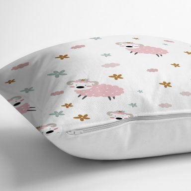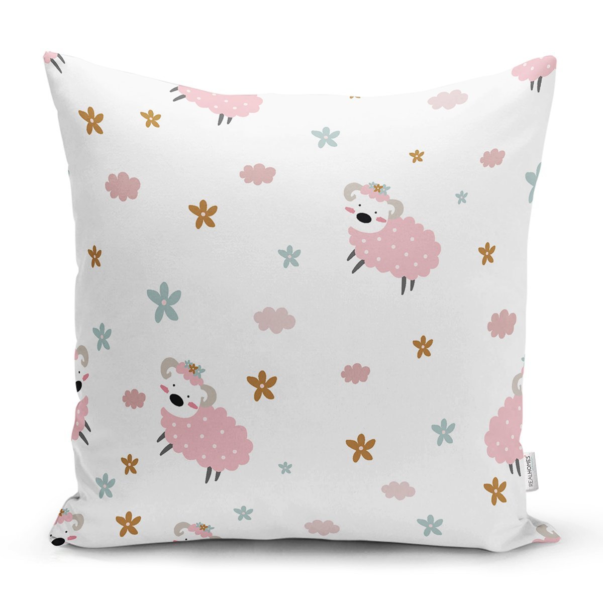 Pembe Koyun Motifli Dijital Baskılı Özel Tasarım Modern Yastık Kırlent Kılıfı