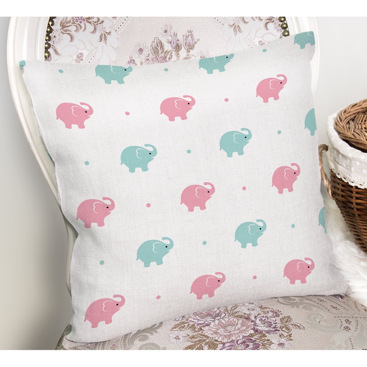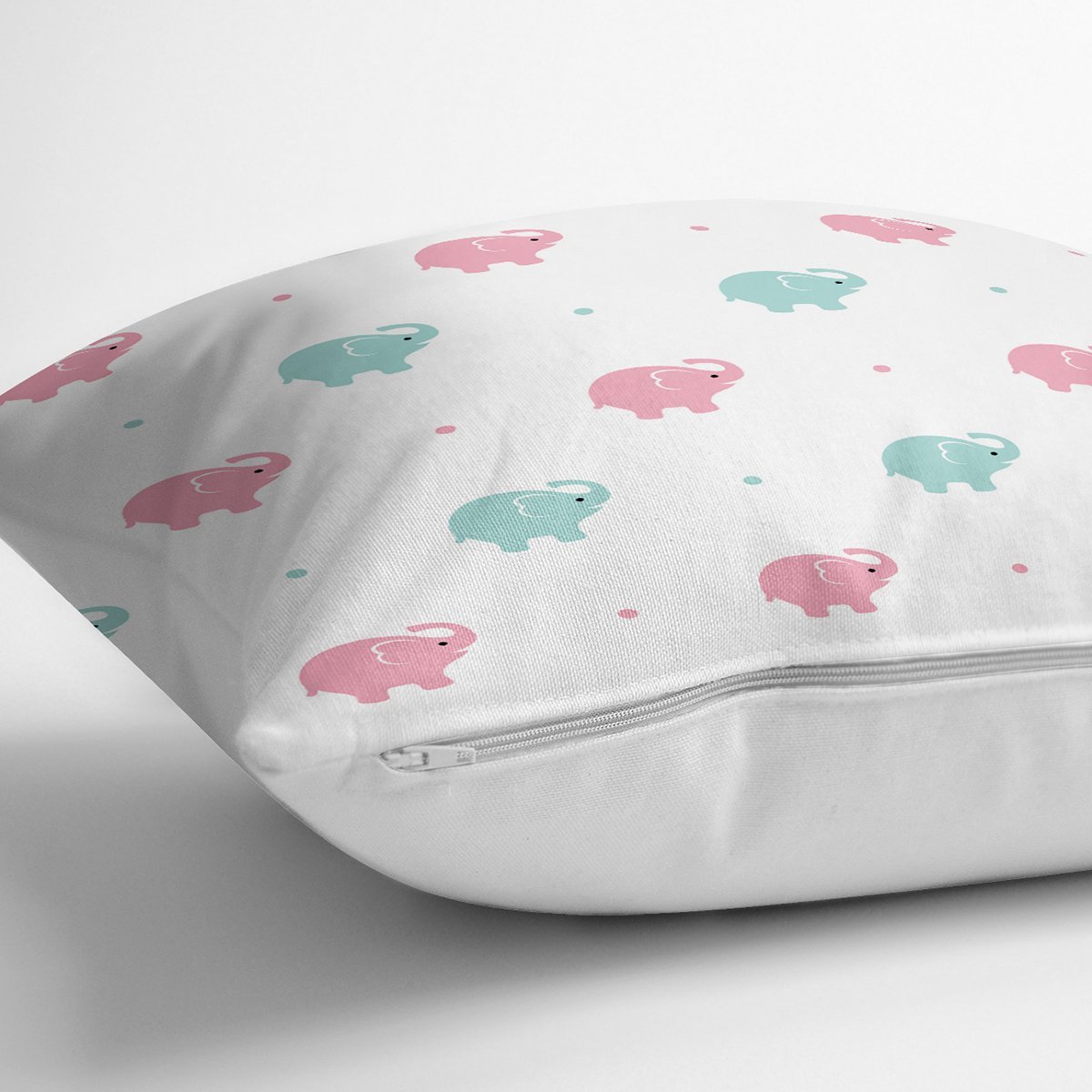 Pembe Mavi Fil Motifli Dijital Baskılı Özel Tasarım Modern Yastık Kırlent Kılıfı