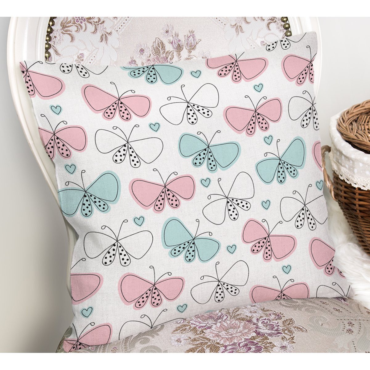 Pembe Mavi Kelebek Desenli Dijital Baskılı Özel Tasarım Modern Yastık Kırlent Kılıfı