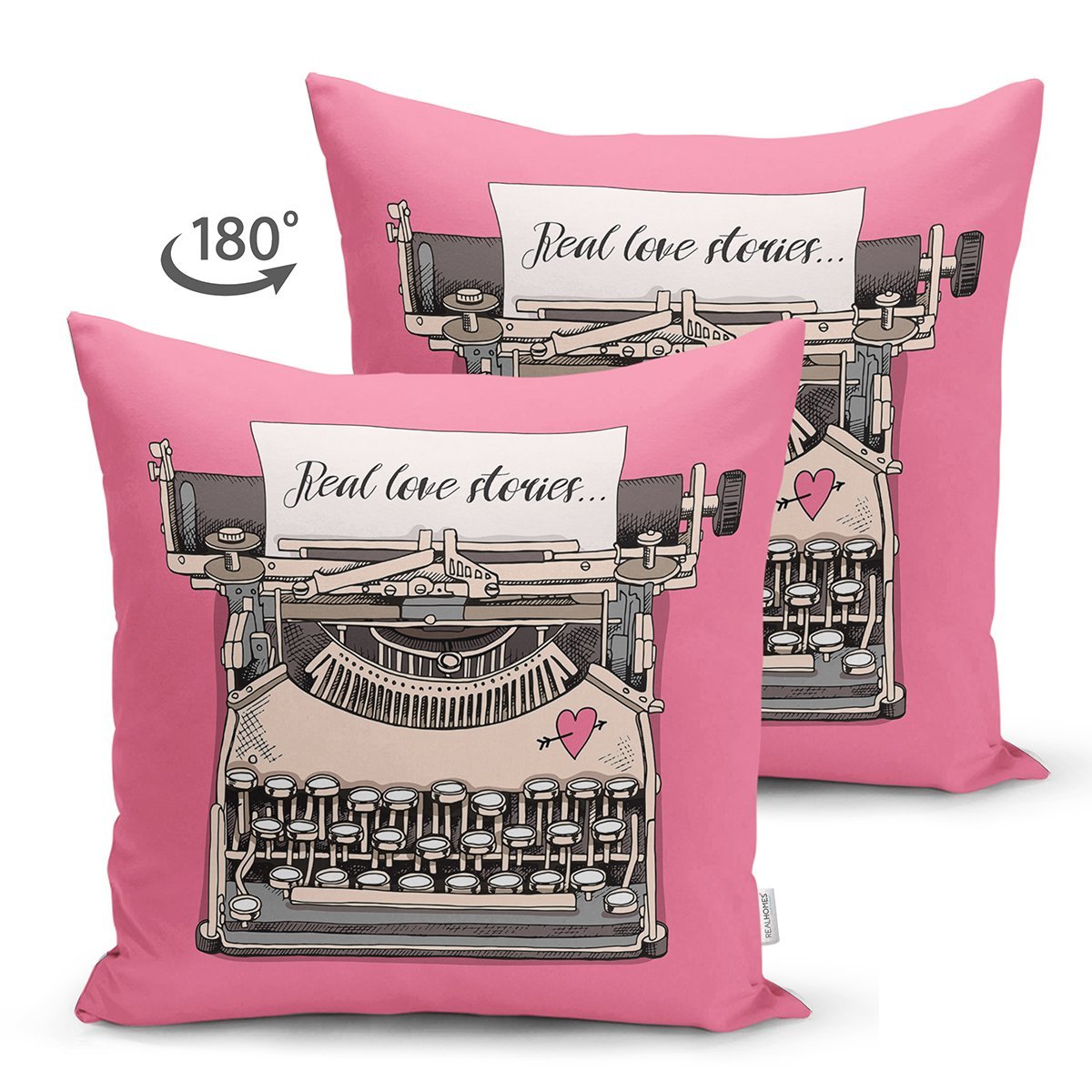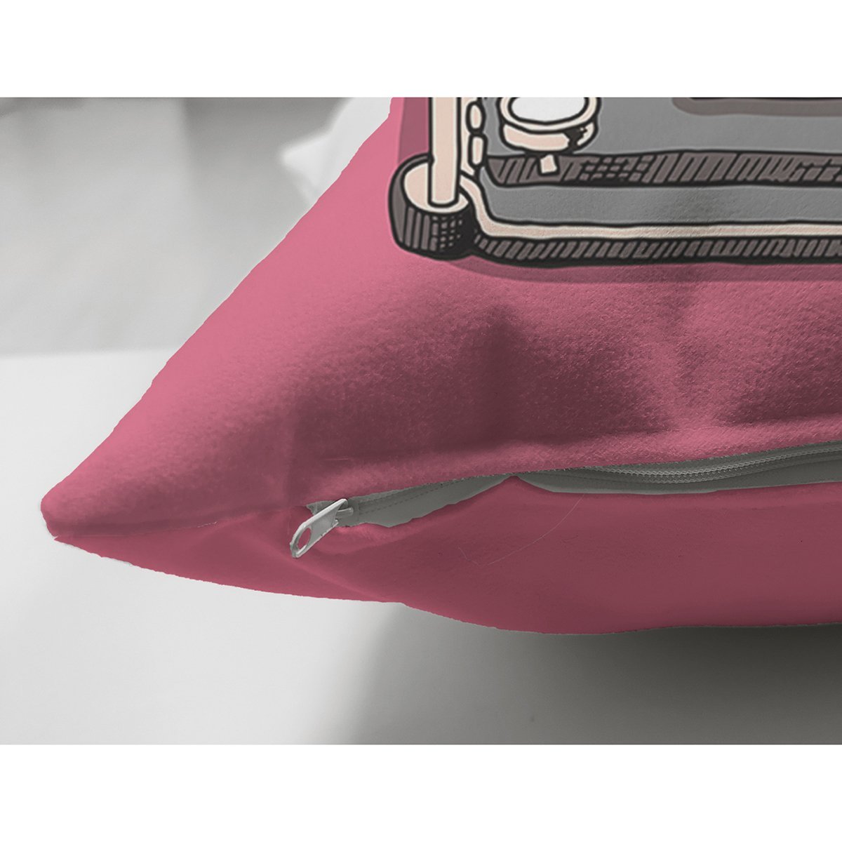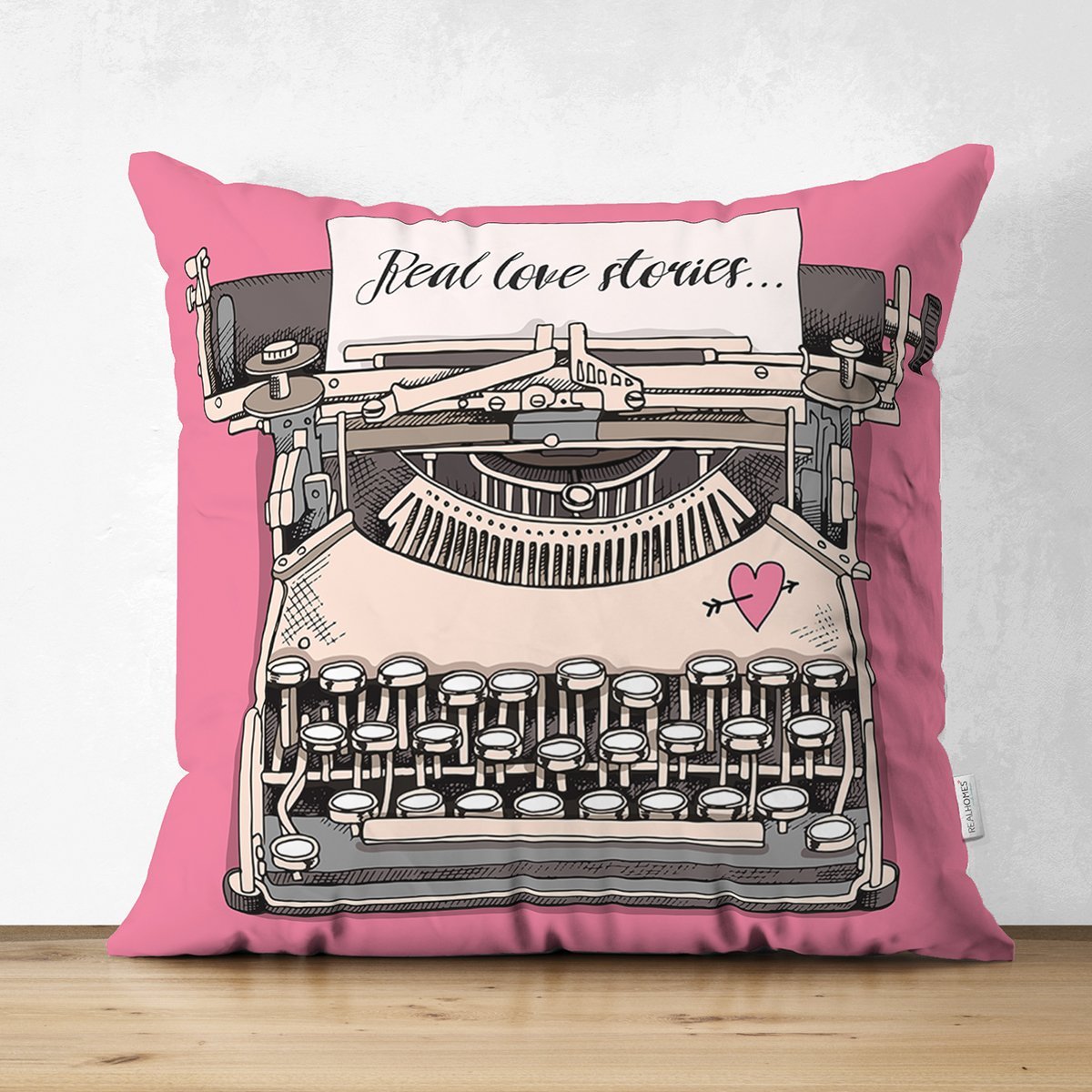 Pembe Zemin Daktilo Tasarımlı Dijital Baskılı Modern Süet Yastık Kırlent Kılıfı