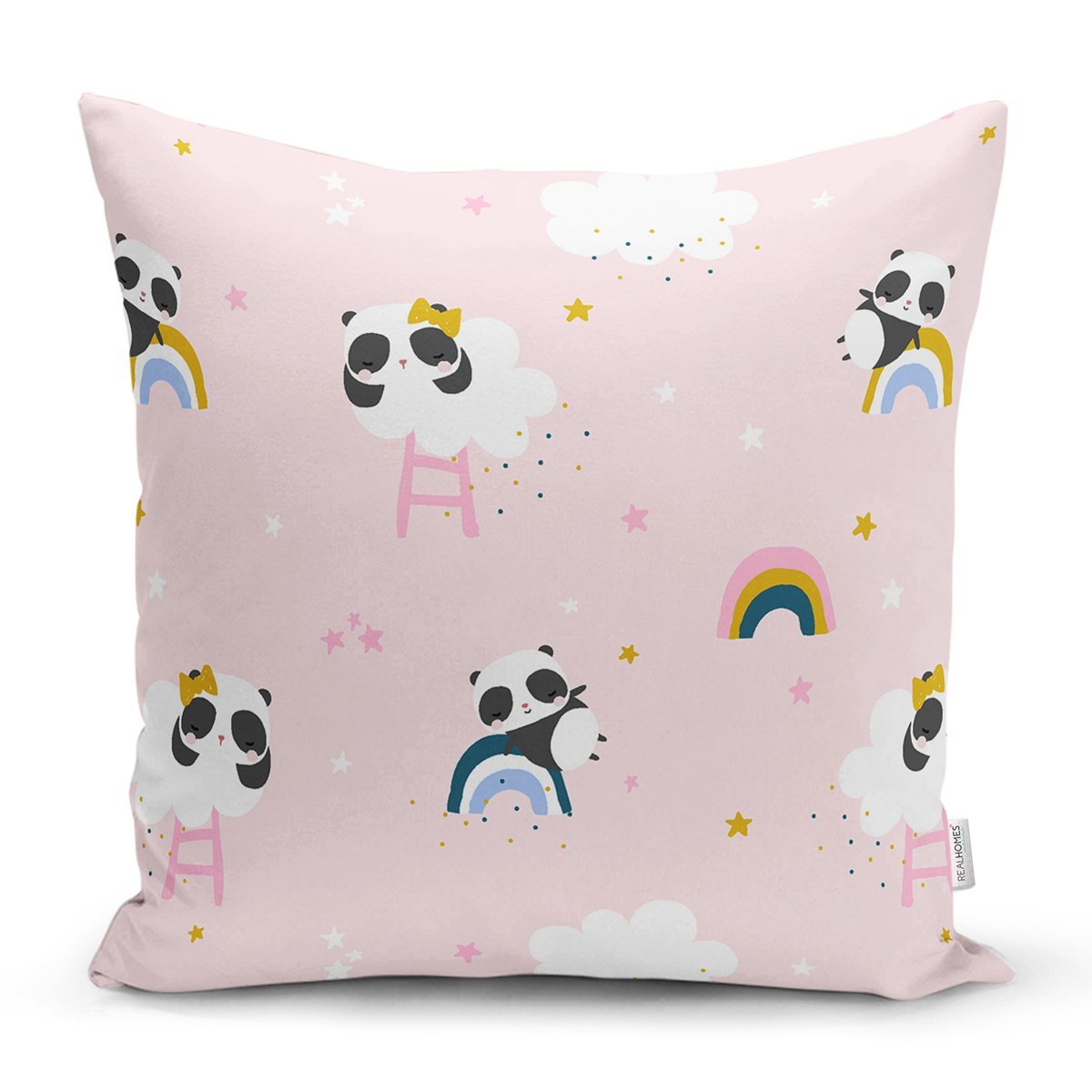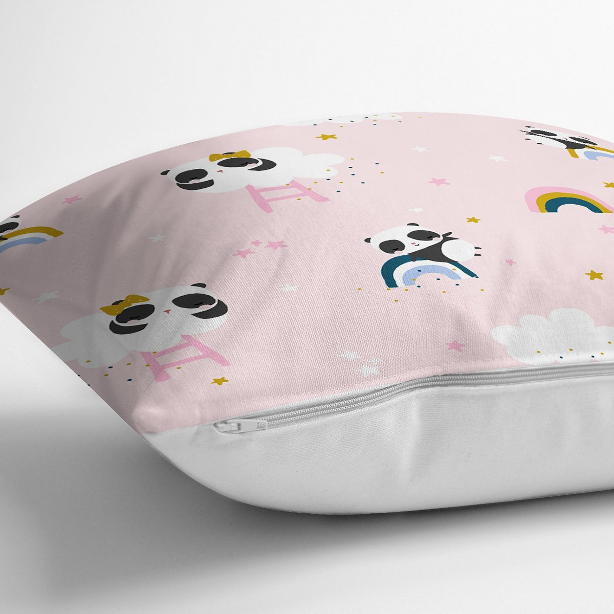 Pembe Zeminde Panda Temalı Dijital Baskılı Özel Tasarım Modern Yastık Kırlent Kılıfı