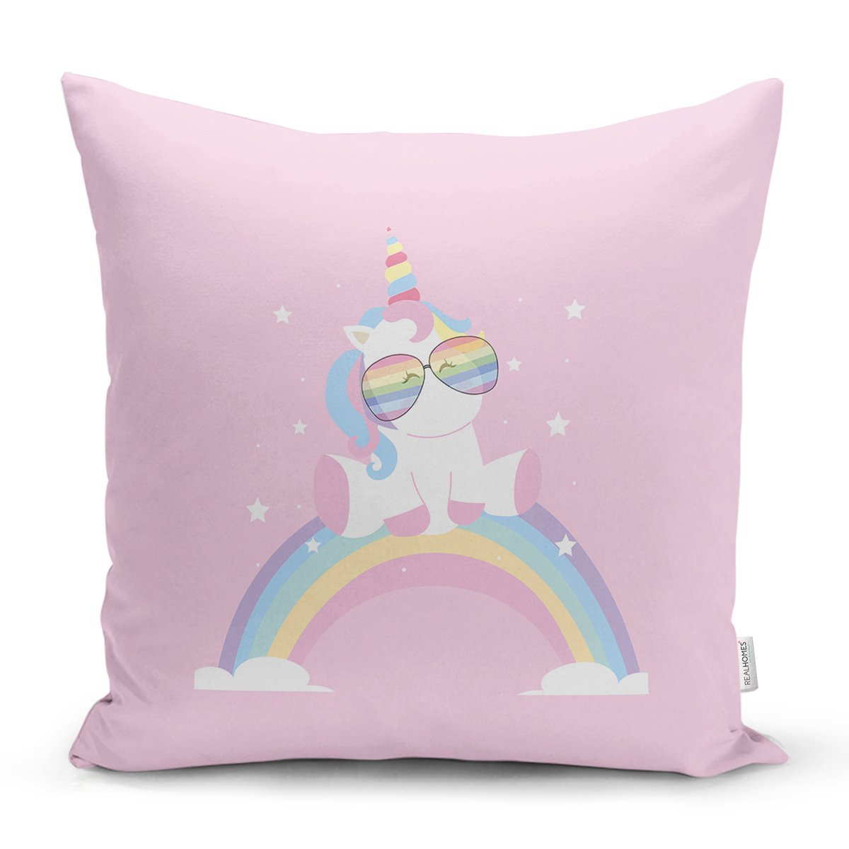 Pembe Zeminde Unicorn Tasarımlı Çocuk Odası Yastık Kırlent Kılıfı