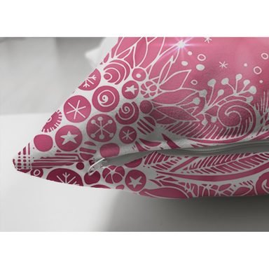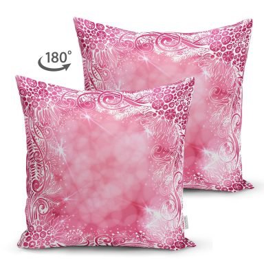 Pembe Zeminli Dijital Baskılı Modern Süet Yastık Kırlent Kılıfı