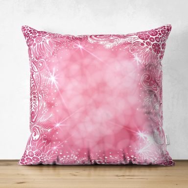 Pembe Zeminli Dijital Baskılı Modern Süet Yastık Kırlent Kılıfı