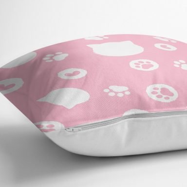 Pembe Zeminli Kedi Suretli Modern Yastık Kırlent Kılıfı