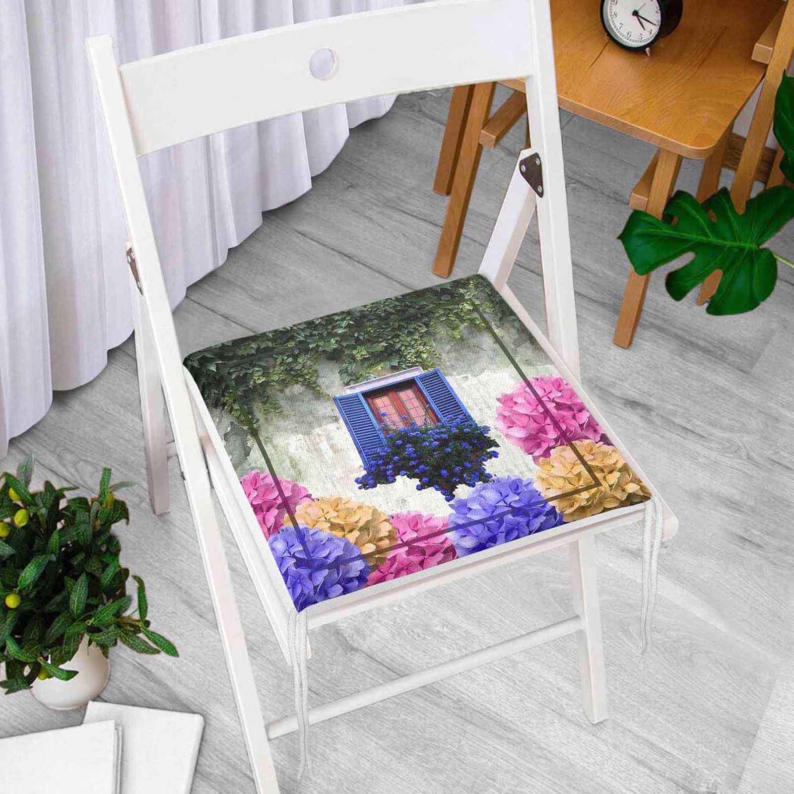 • Pencere Resimli Dekoratif Kare Sandalye Minderi bir tarafı desenli diğer tarafı düz renk olarak kullanılabilmektedir. RealHomes özel tasarım Sandalye Minderleri kumaş seçimi ve dikiş detaylarıyla kaliteli bir tekstil dekorasyon ürünü olarak sunulmaktadır.