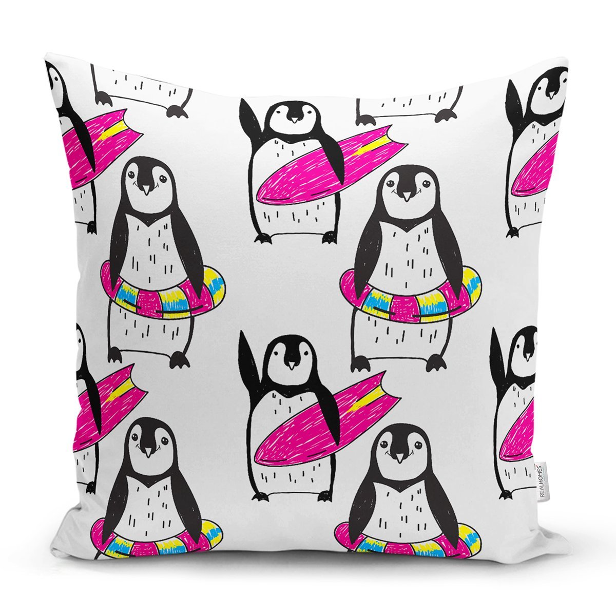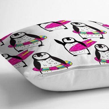 Penguen Desenli Dijital Baskılı Özel Tasarım Modern Yastık Kırlent Kılıfı