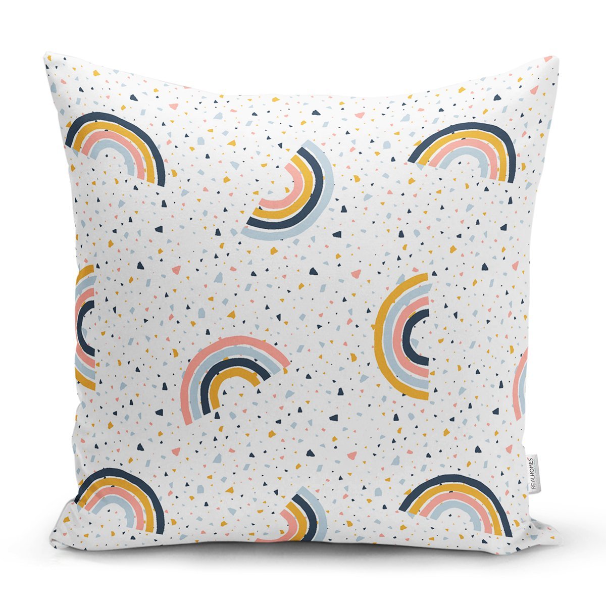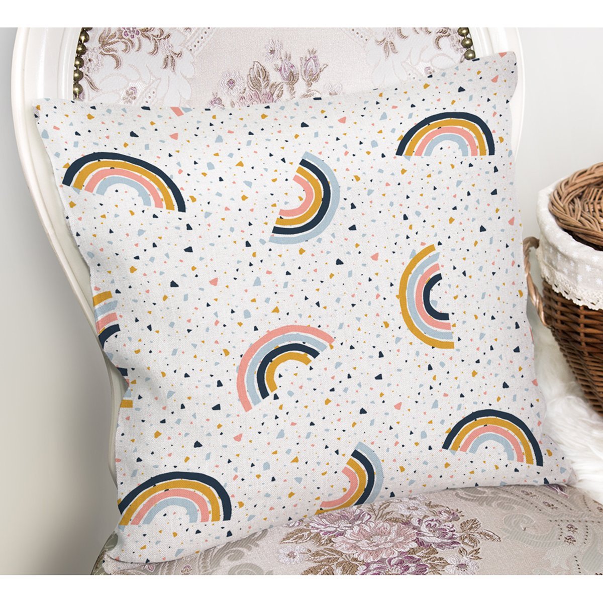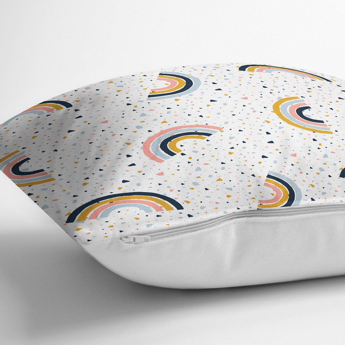 Puanlı Zeminde Gökkuşağı Motifli Dijital Baskılı Özel Tasarım Modern Yastık Kırlent Kılıfı