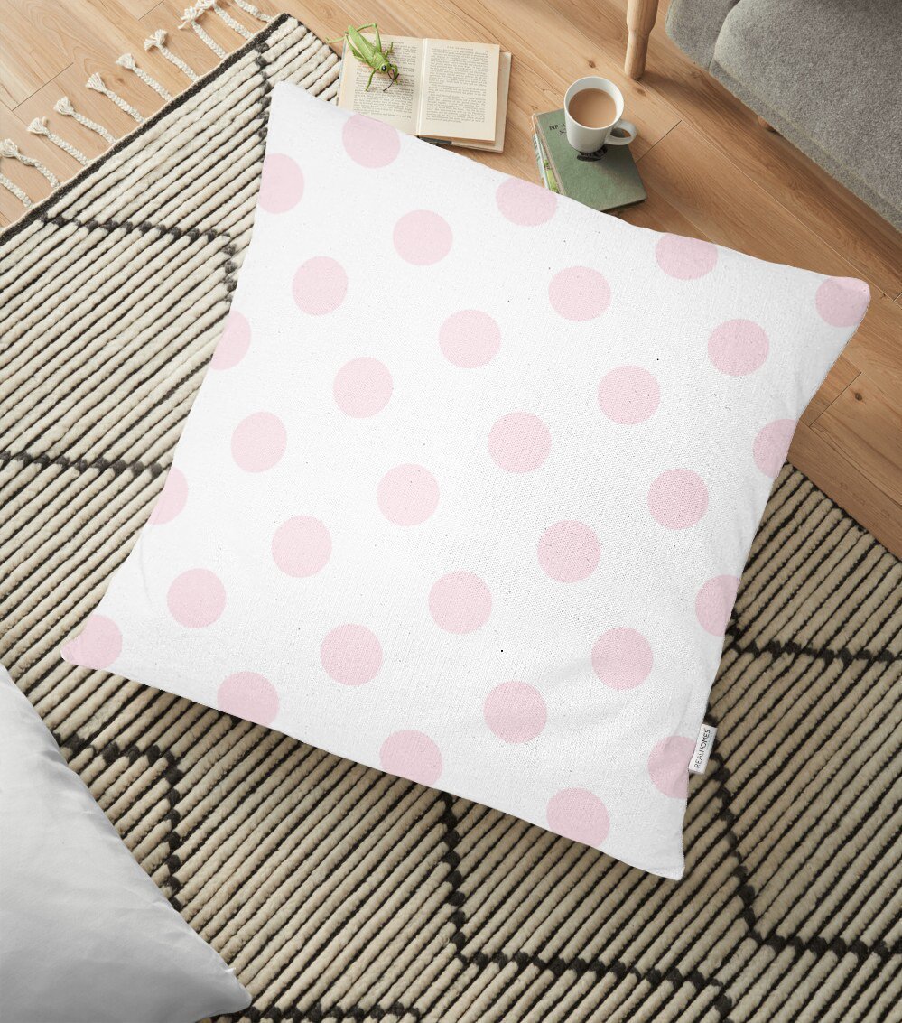 Pudra Puantiyeli Dijital Baskılı Dekoratif Yer Minderi – 70 x 70 cm