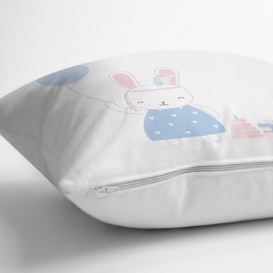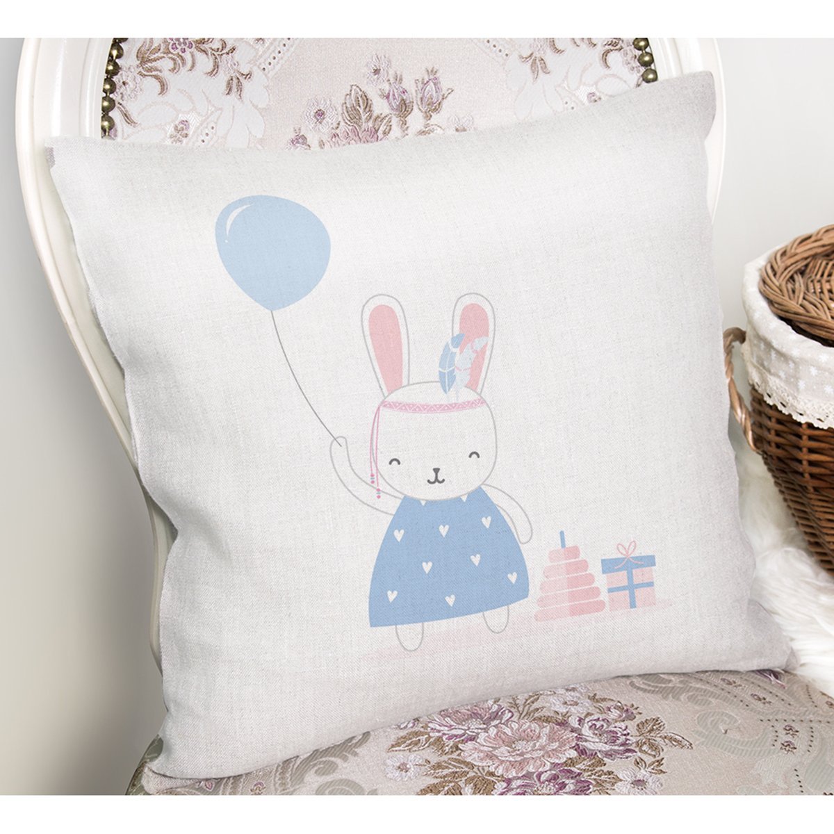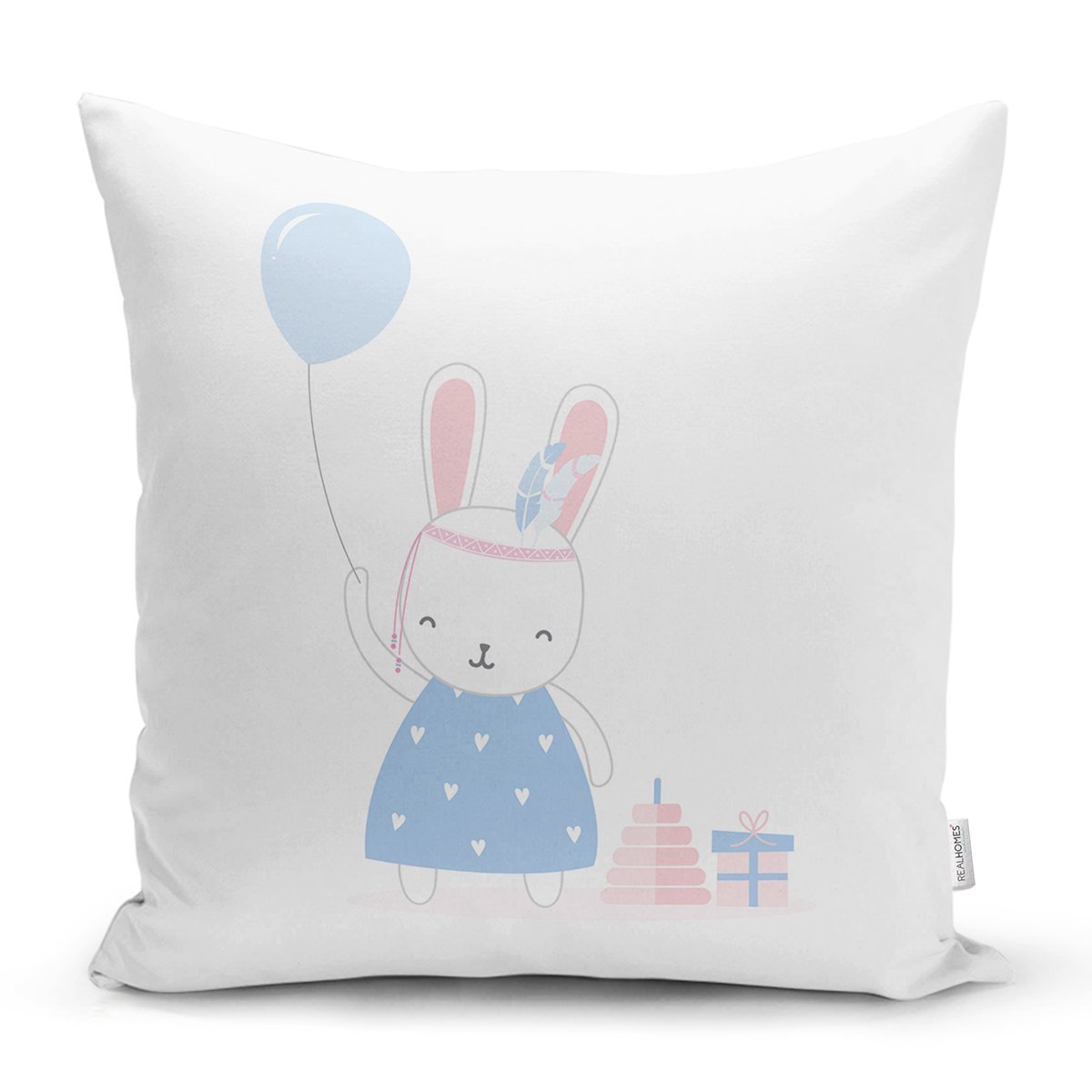Realhomes Beyaz Zeminde Balonlu Sevimli Tavşan Modern Yastık Kırlent Kılıfı