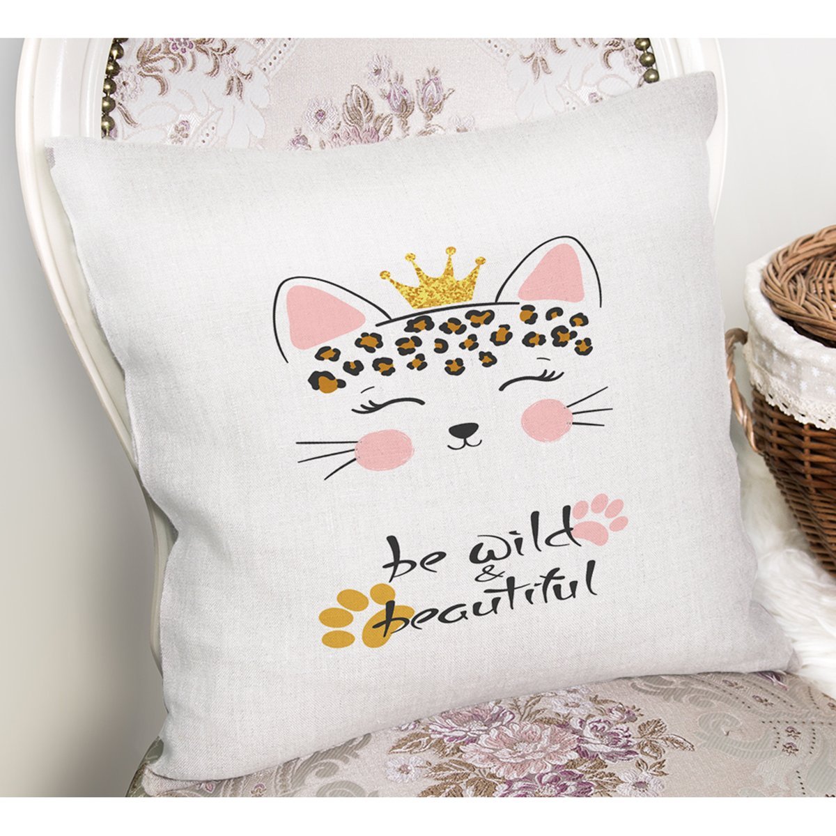 Realhomes Beyaz Zeminde Be Wild & Beautiful Temalı Modern Yastık Kırlent Kılıfı