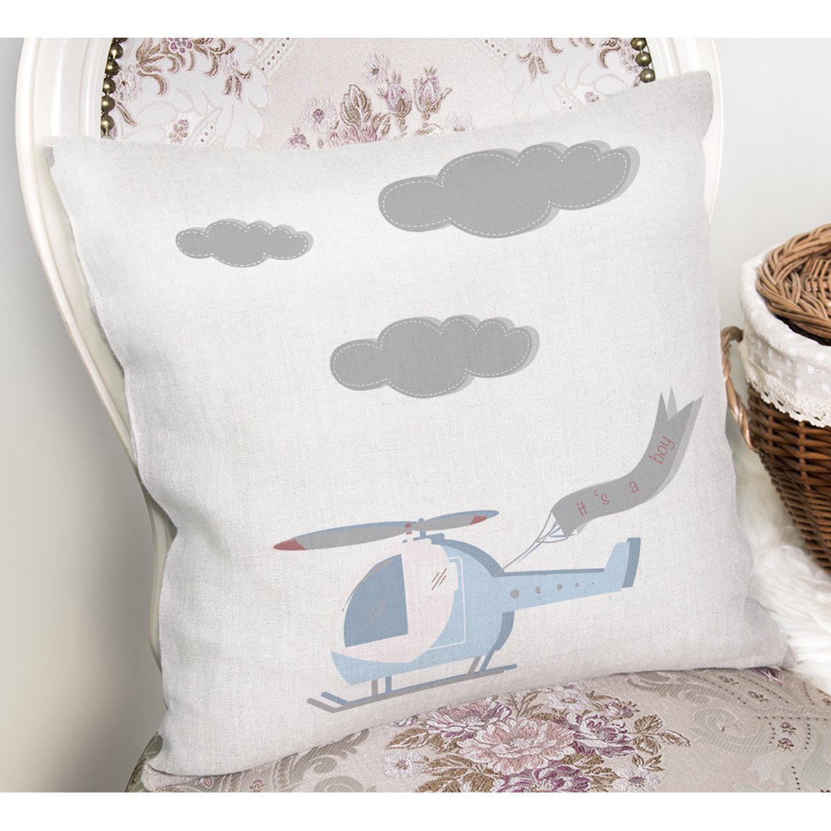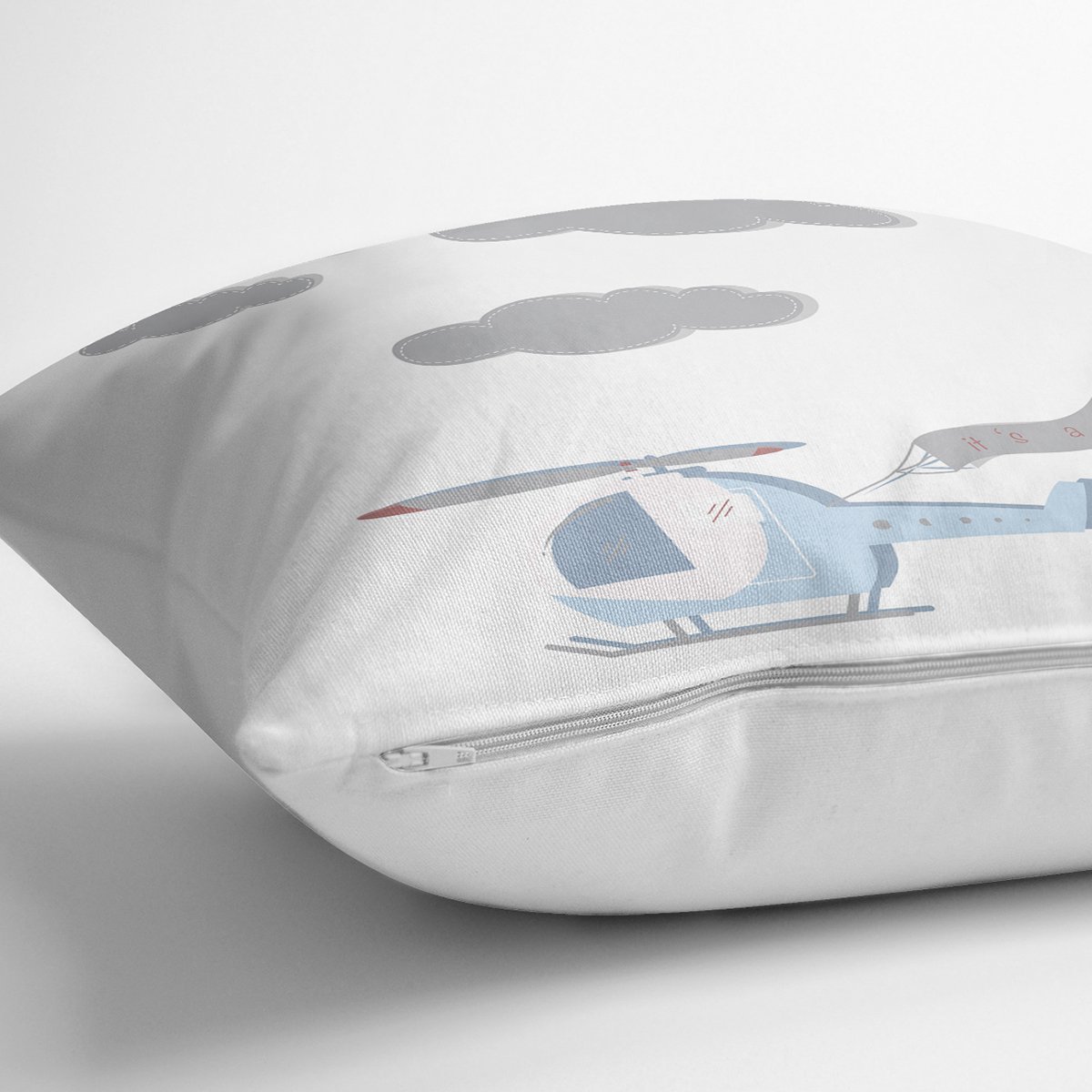 Realhomes Beyaz Zeminde Helikopter Tasarımlı Modern Yastık Kırlent Kılıfı