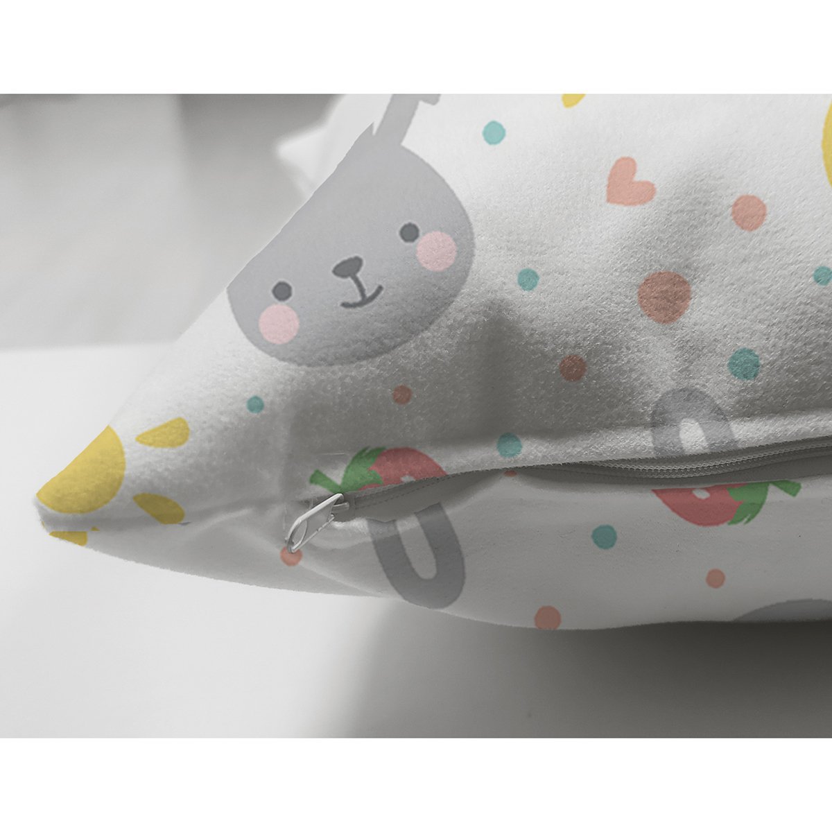 Realhomes Çilek Motifli Tavşan Tasarımlı Dijital Baskılı Çocuk Odası Süet Yastık Kırlent Kılıfı