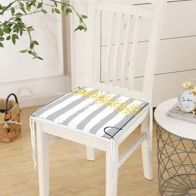 Realhomes Gri Beyaz Çizgili Sarı Puanlı Temalı Modern Fermuarlı Sandalye Minderi