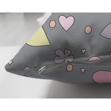 Realhomes Gri Zeminde Renkli Çiçek ve Kalp Tasarımlı Dijital Baskılı Çocuk Odası Süet Yastık Kırlent Kılıfı