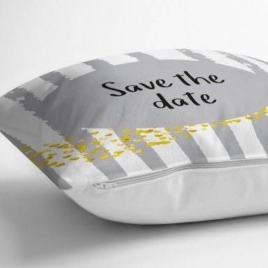 Realhomes Gri Zeminde Save The Date Motifli Modern Yastık Kırlent Kılıfı