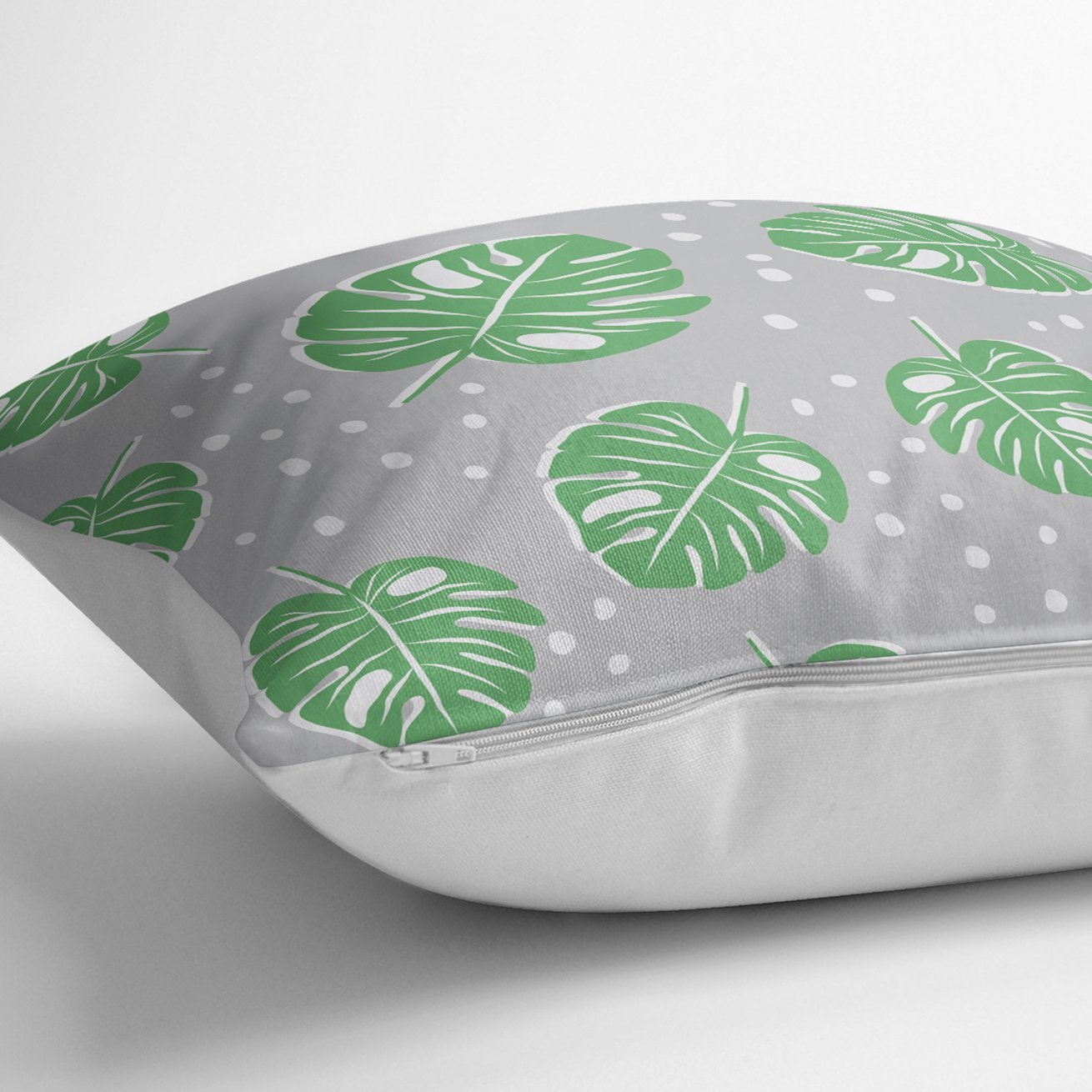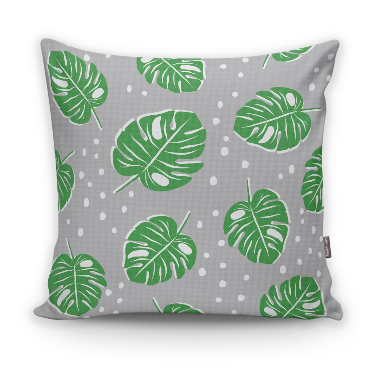 Realhomes Gri Zeminde Yapraklar Dijital Baskılı Modern Yastık Kılıfı