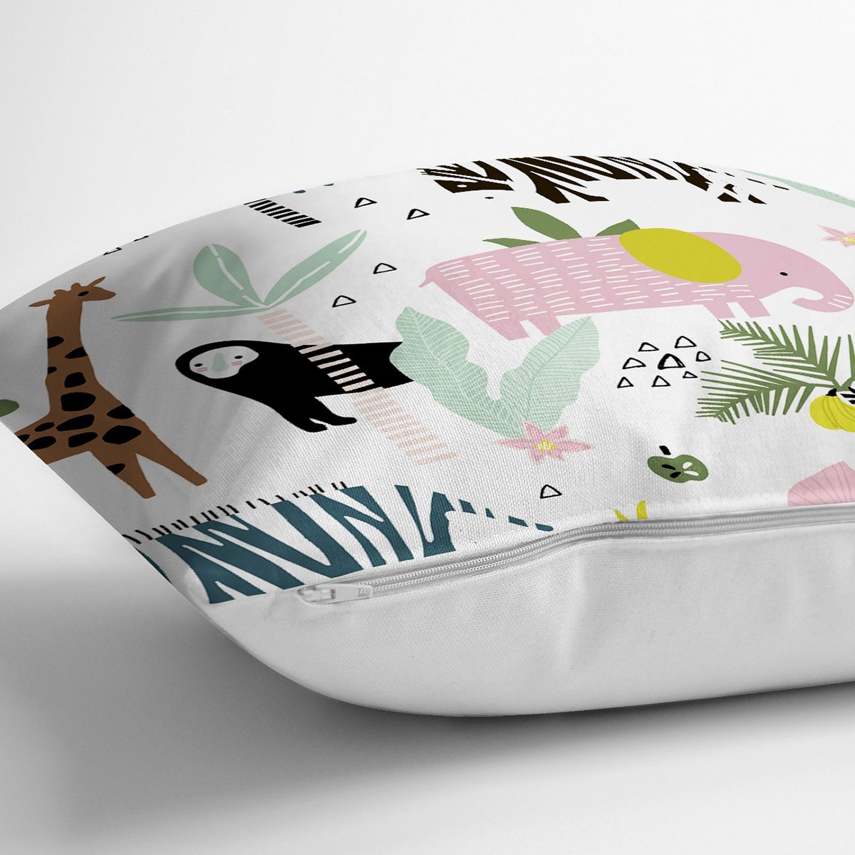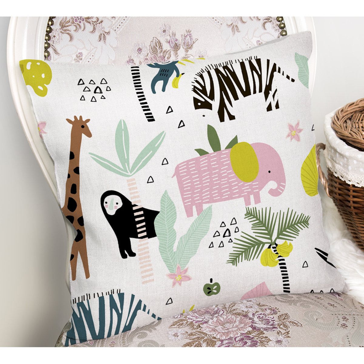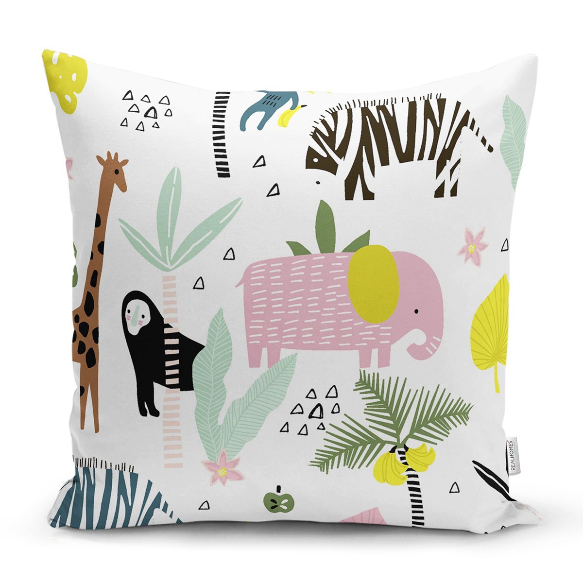 Realhomes Hayvanat Bahçesi Konseptli Hayvan Motifli Özel Tasarım Dijital Baskılı Modern Yastık Kırlent Kılıfı