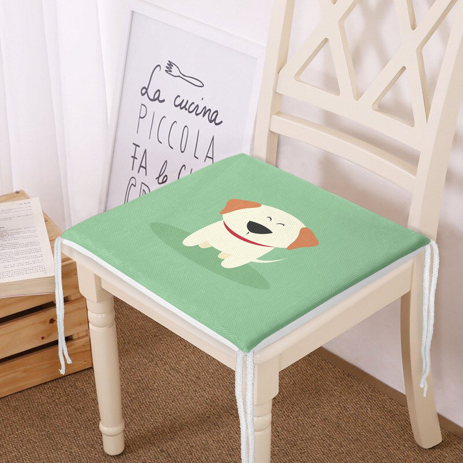 Realhomes Köpek Desenli Dijital Baskılı Modern Fermuarlı Sandalye Minderi
