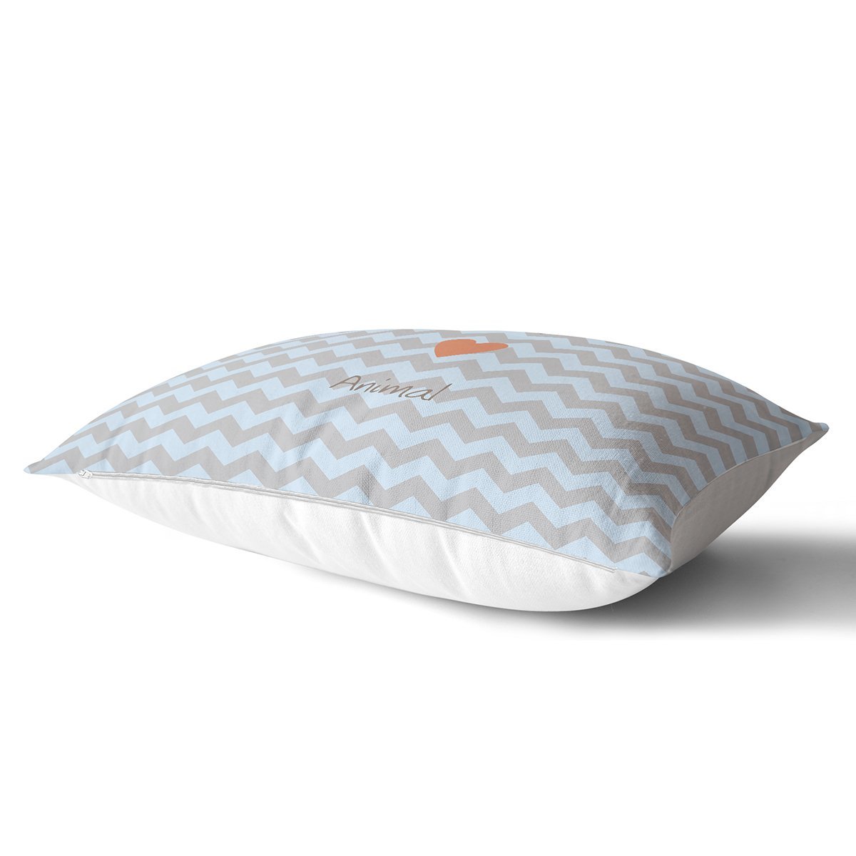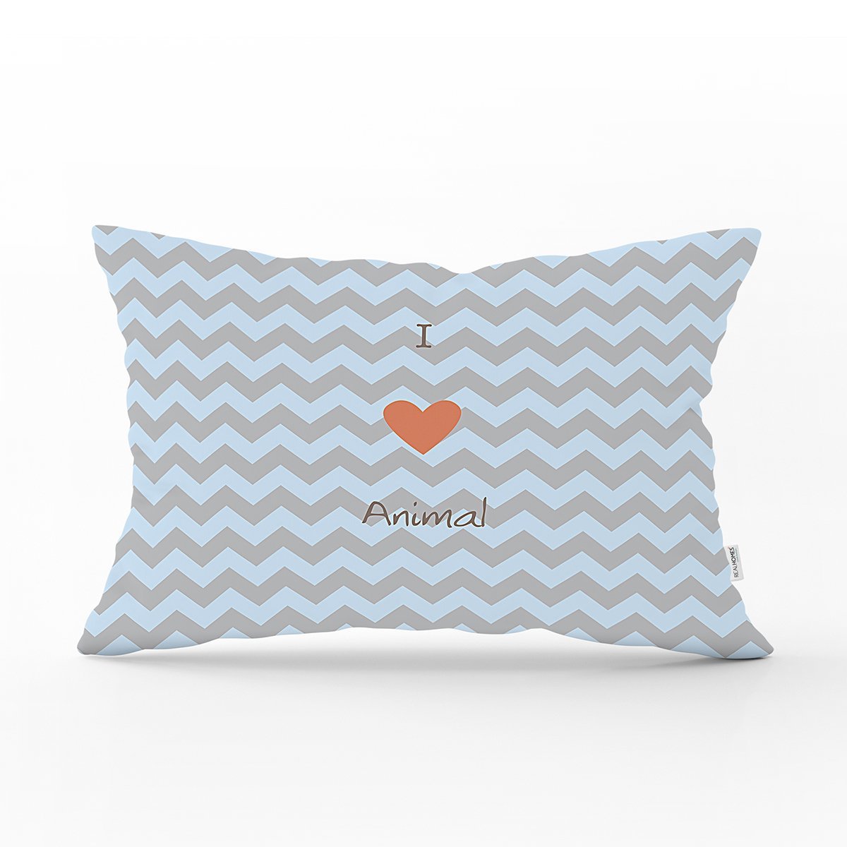 Realhomes Mavi Gri Zikzaklı I Love Animal Desenli Modern Dikdörtgen Yastık Kırlent Kılıfı