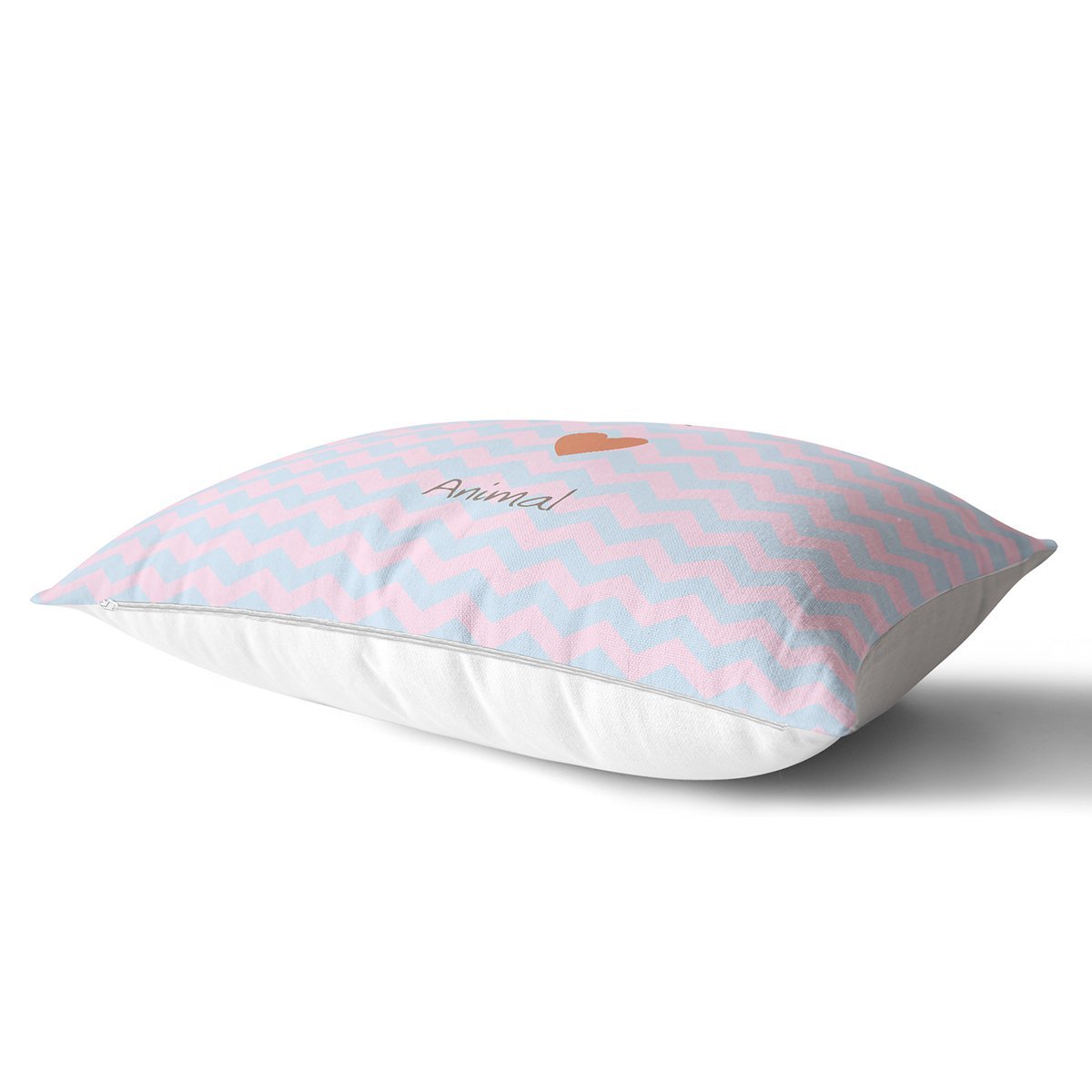 Realhomes Mavi Pembe Zikzaklı I Love Animal Desenli Modern Dikdörtgen Yastık Kırlent Kılıfı