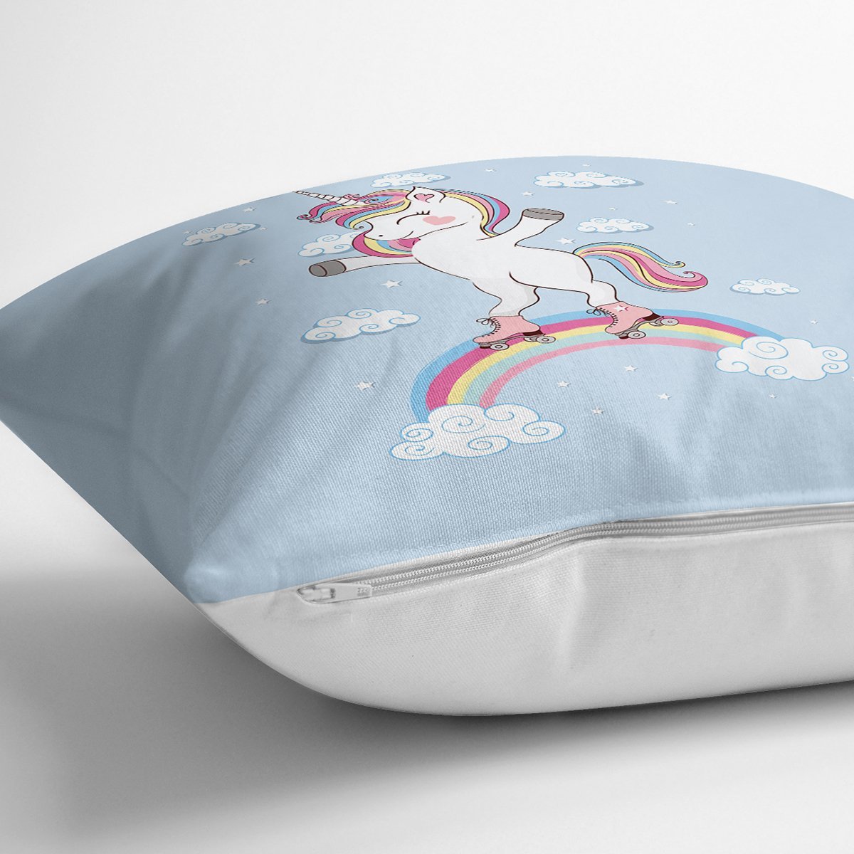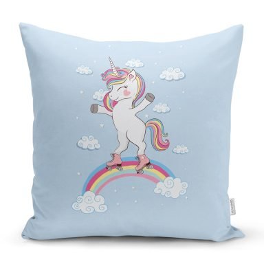 Realhomes Mavi Zeminde Unicorn At Desenli Modern Yastık Kırlent Kılıfı