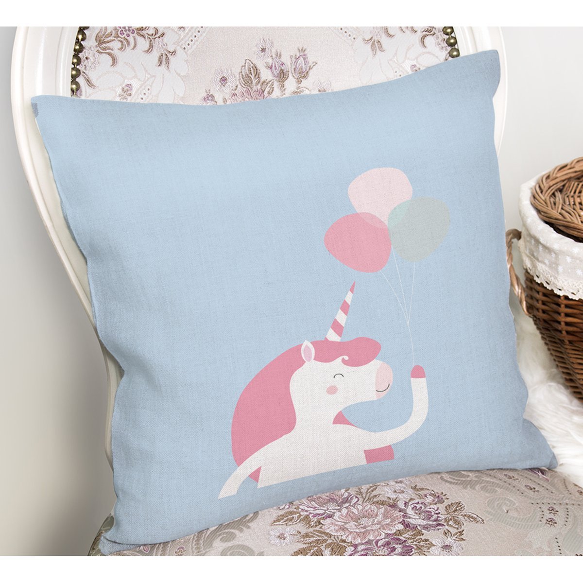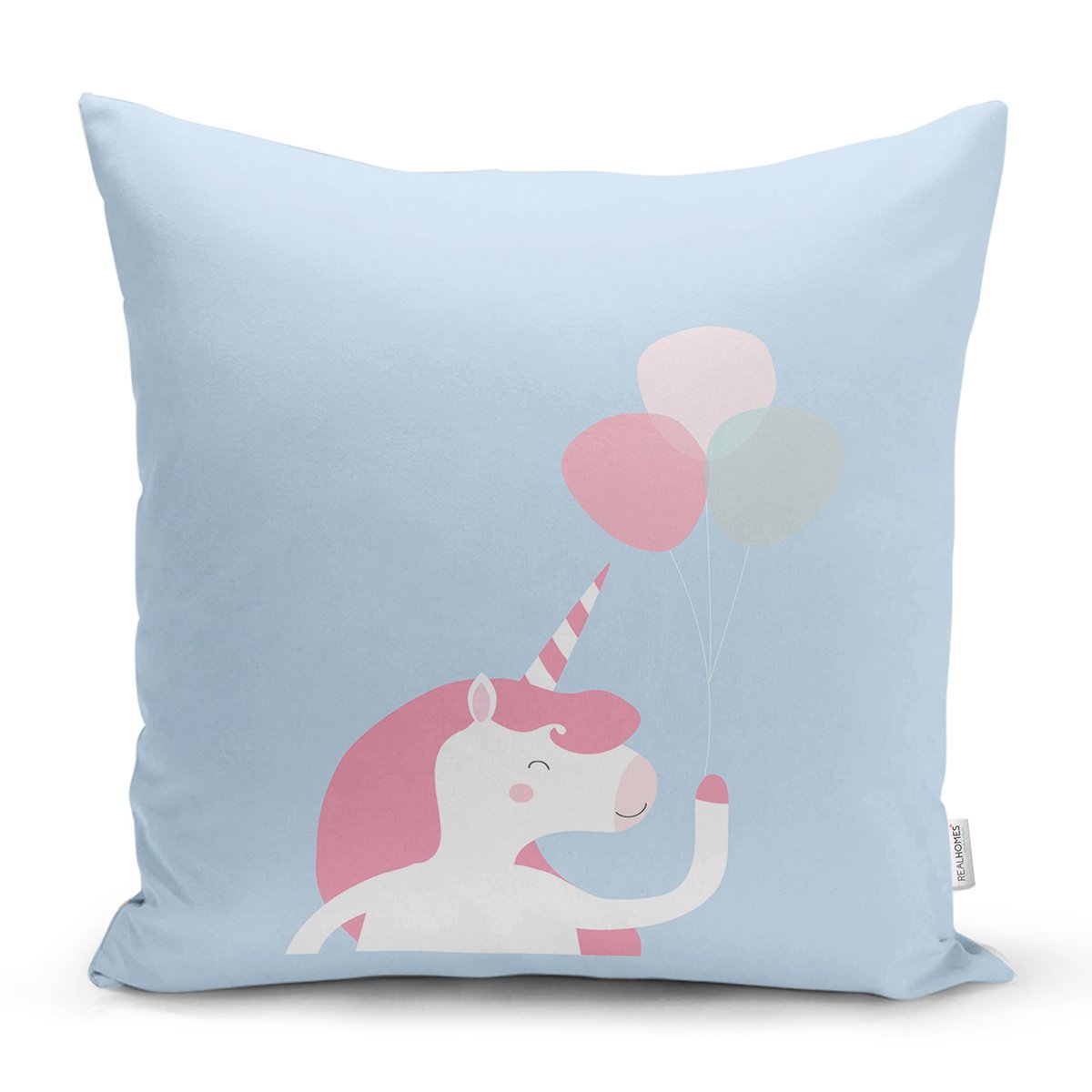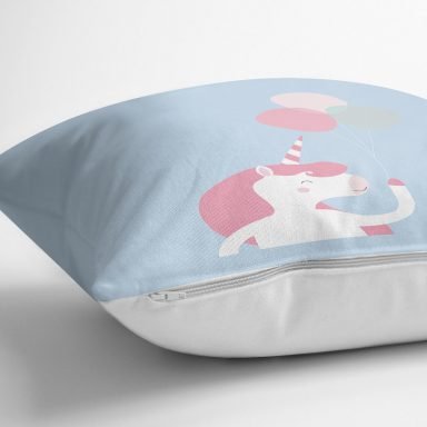 Realhomes Mavi Zeminde Unicorn At Tasarımlı Modern Yastık Kırlent Kılıfı