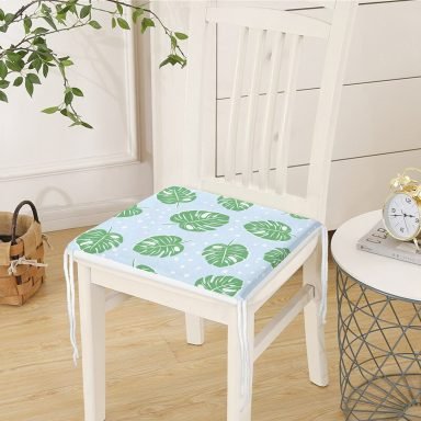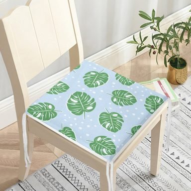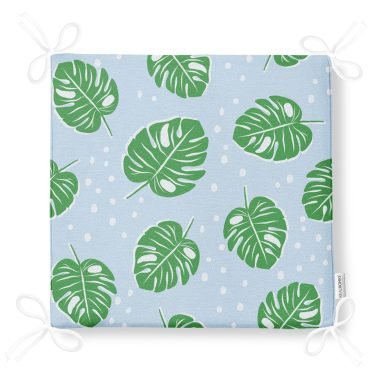 Realhomes Mavi Zeminde Yapraklar Dijital Baskılı Modern Sandalye Minderi