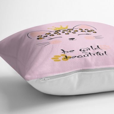 Realhomes Pembe Zeminde Be Wild & Beautiful Temalı Modern Yastık Kırlent Kılıfı