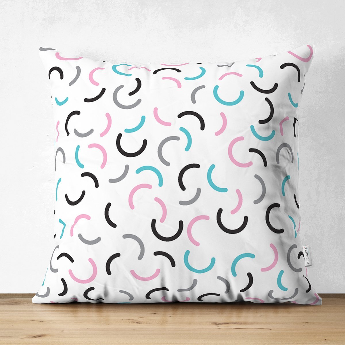 Realhomes Renkli Oval Çizgi Tasarımlı Dijital Baskılı Çocuk Odası Süet Yastık Kırlent Kılıfı